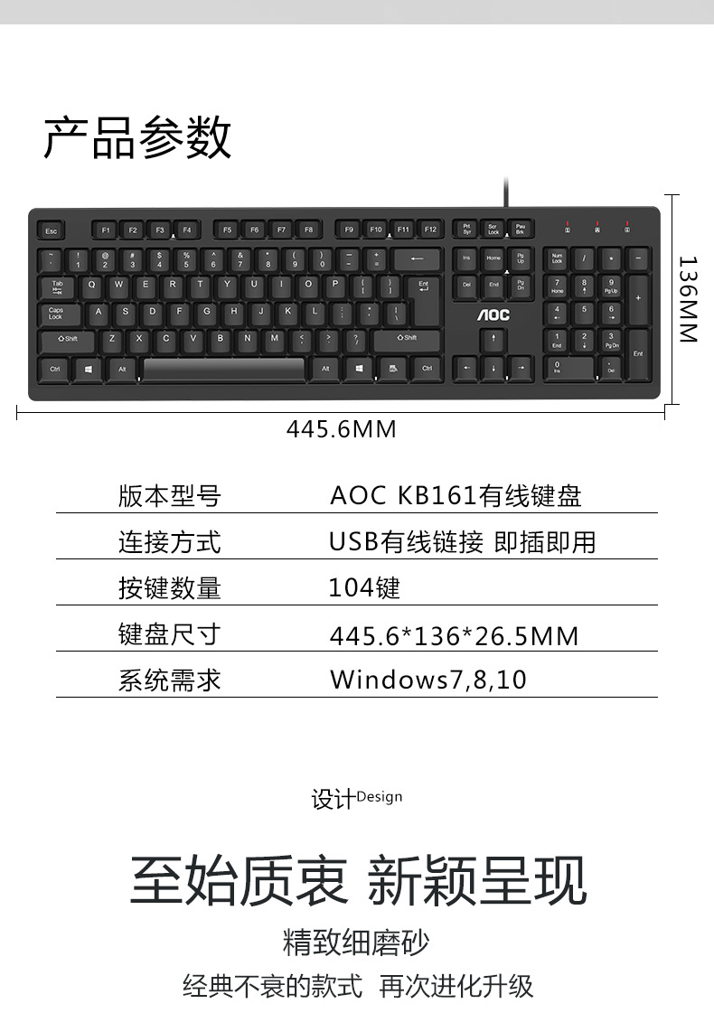 TPV AOC KB161USB 유선 키보드 유닛 사무실 올인원 데스크탑 키보드 및 마우스 크로스 보더 도매