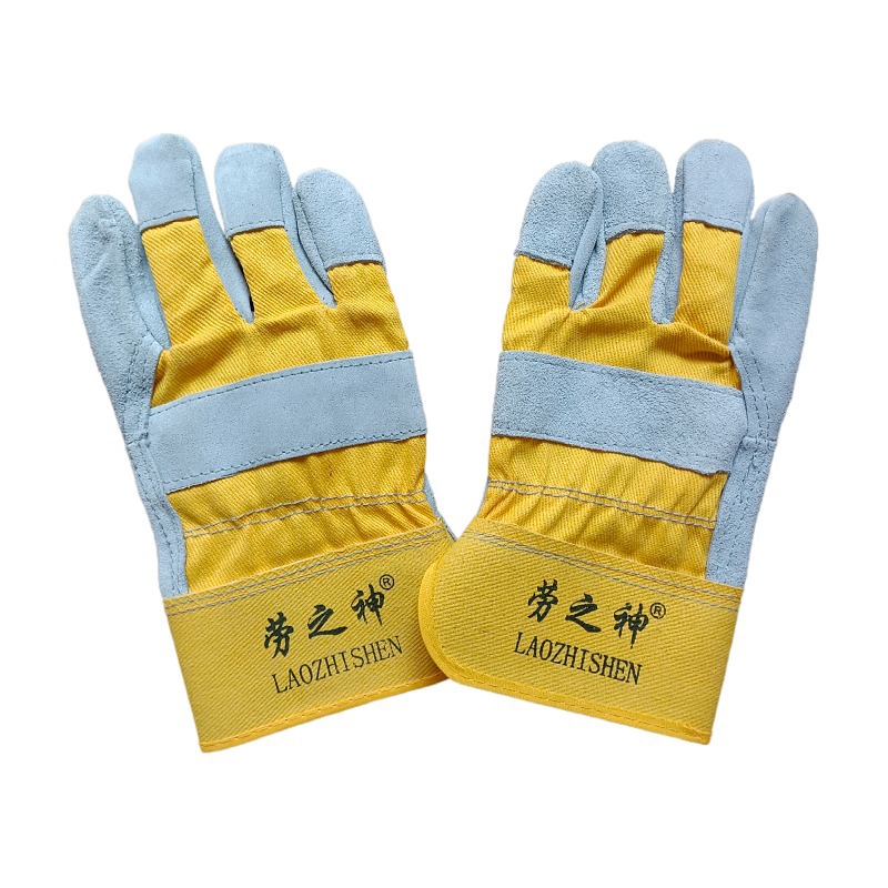 2 층 소가죽 용접 장갑 반 가죽 노란색 천 짧은 용접기 장갑 단열 내마모성 용접기 보호 노동 보호 장갑