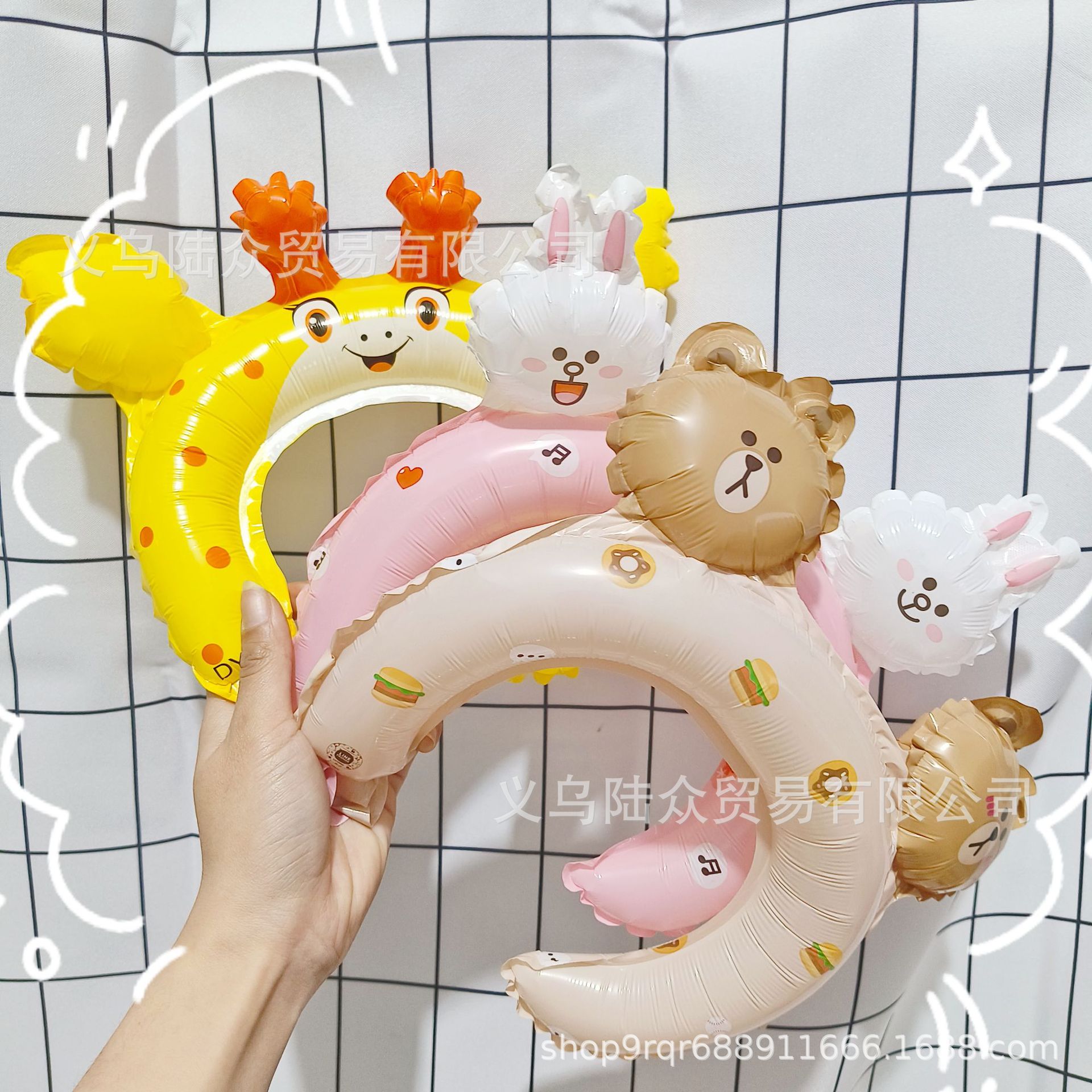 어린이 날 머리띠 알루미늄 필름 풍선 작은 선물 만화 동물 머리띠 알루미늄 호일 풍선 도매