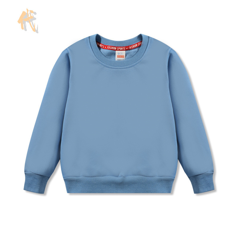 가을과 겨울 새로운 어린이 라운드 넥 스웨터 면 테리 긴 소매 단색 학급 유니폼 교복 인쇄 자수 인쇄 로고