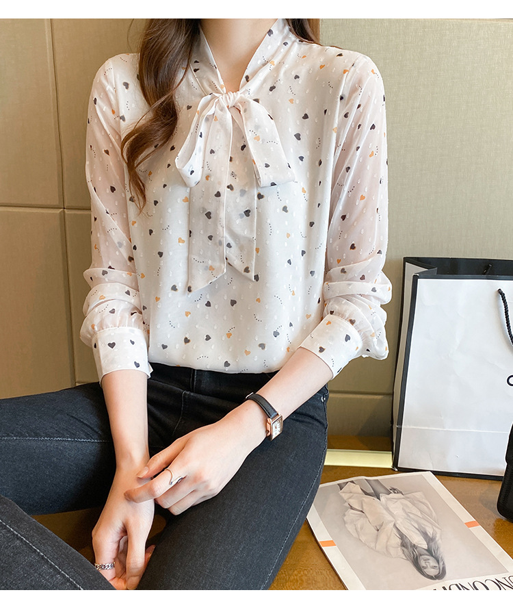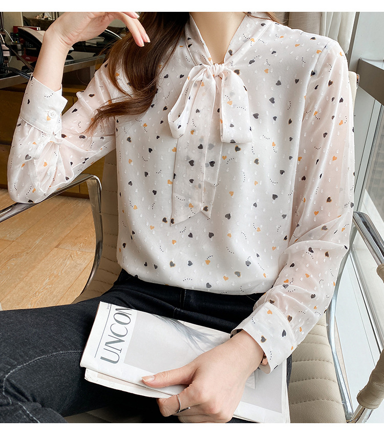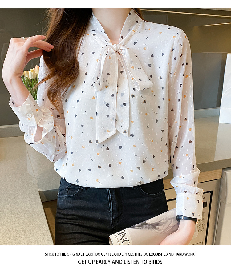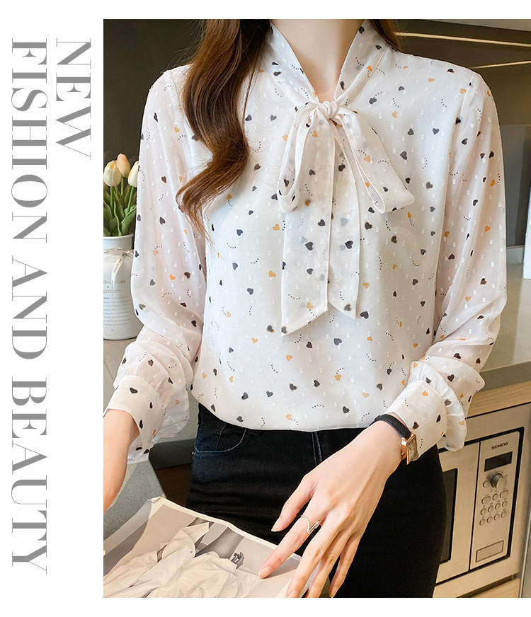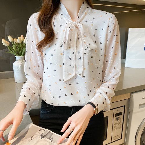 긴 소매 쉬폰 셔츠 여성의 2024 봄과 가을 새로운 유행 한국 스타일 꽃 활 작은 셔츠 벨리 커버 슬리밍 탑 트렌디
