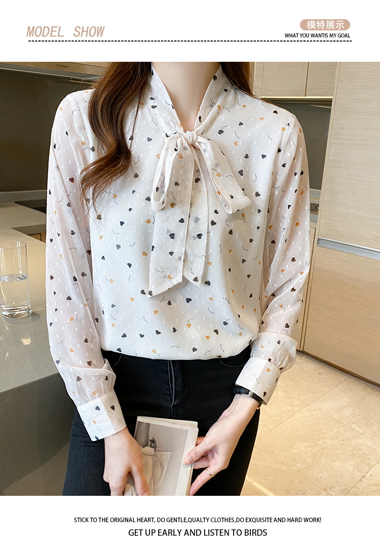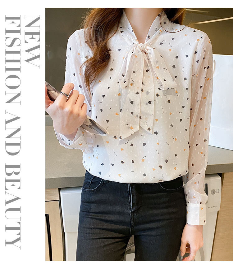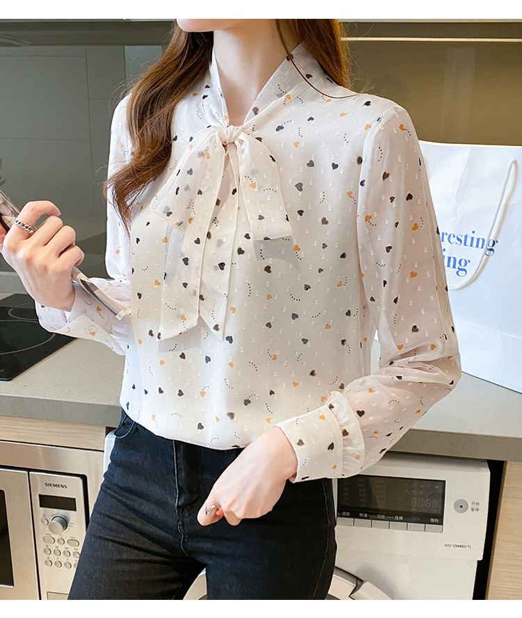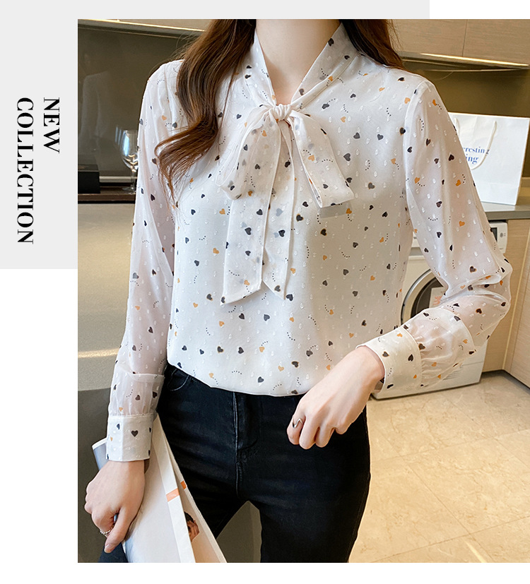긴 소매 쉬폰 셔츠 여성의 2024 봄과 가을 새로운 유행 한국 스타일 꽃 활 작은 셔츠 벨리 커버 슬리밍 탑 트렌디스토어 가기