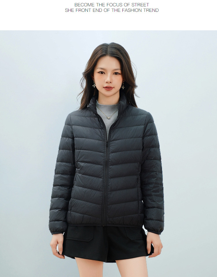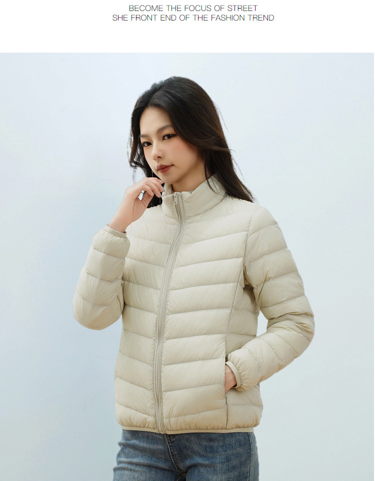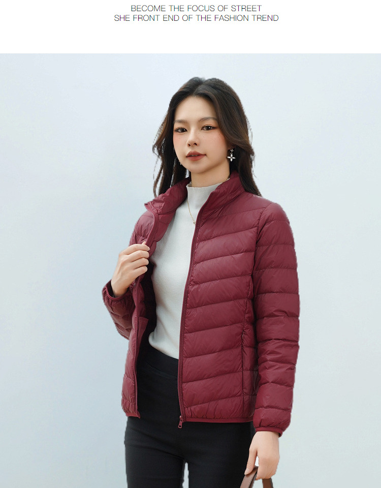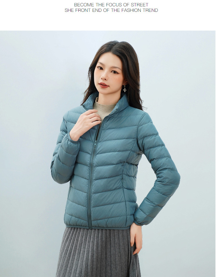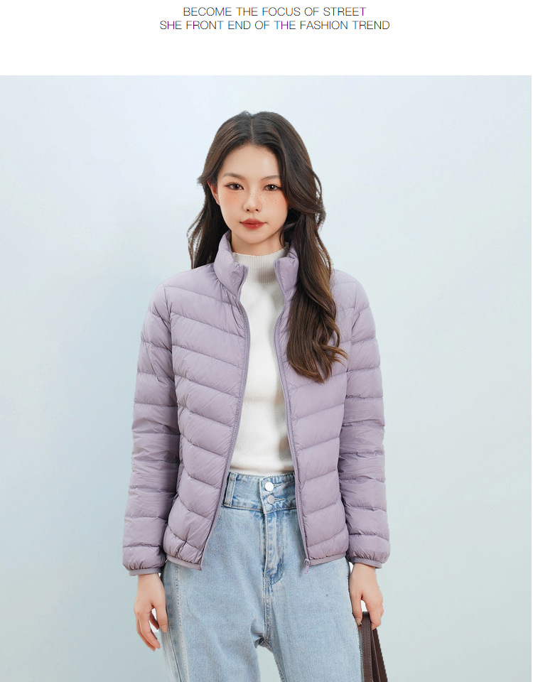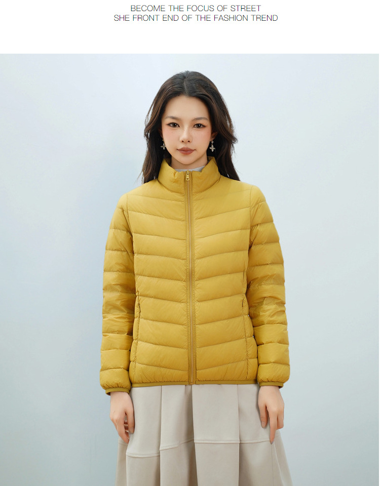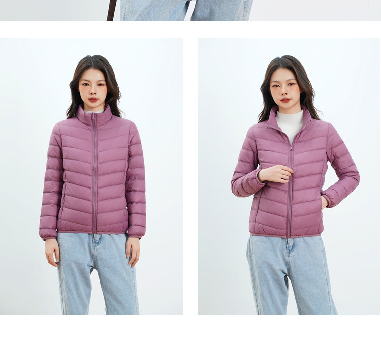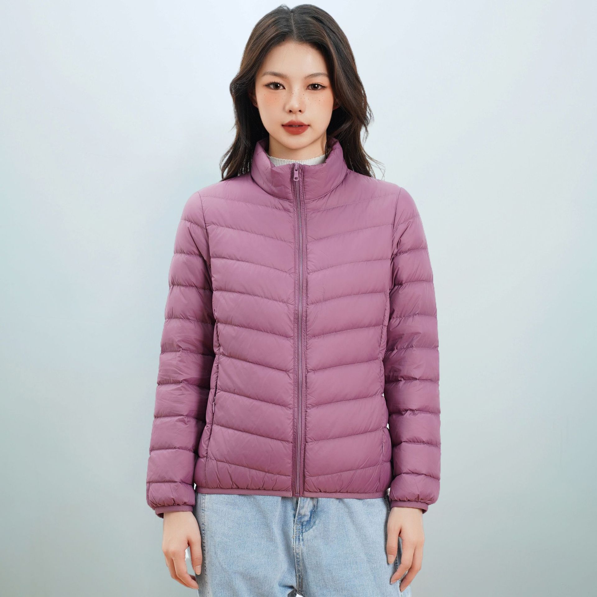 Pinghu Chi 새로운 여성의 새로운 GB 90 다운 간단한 다운 솔리드 컬러 여성용 수직 칼라 여성용 경량 다운 재킷