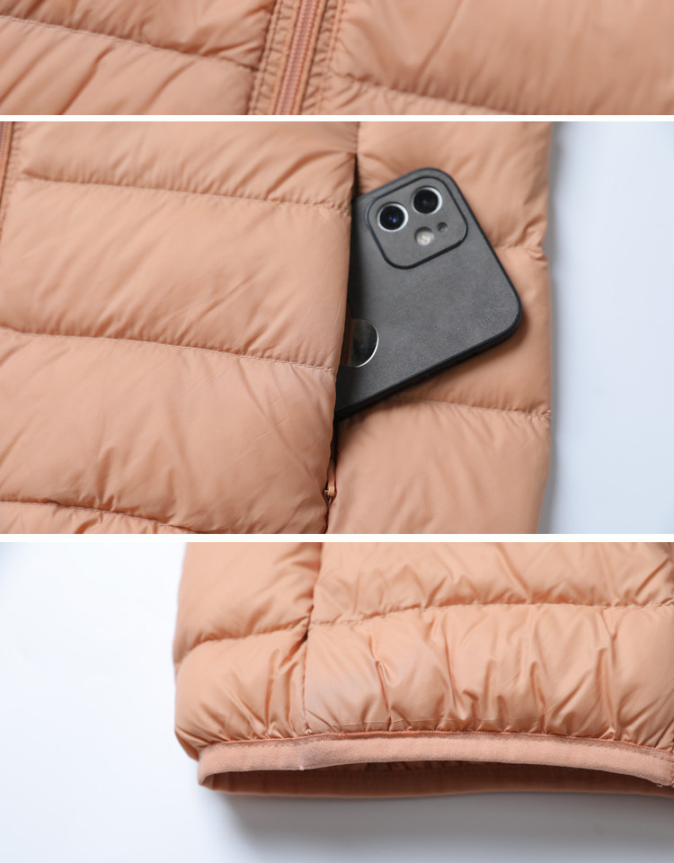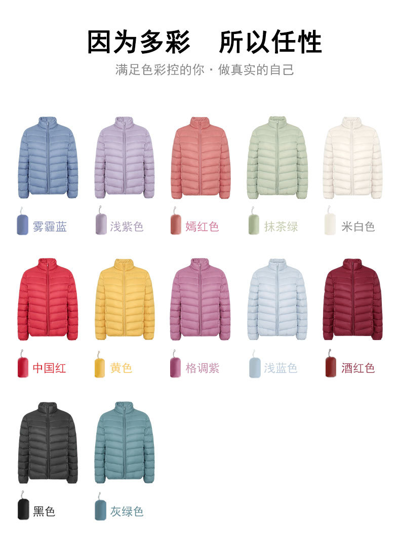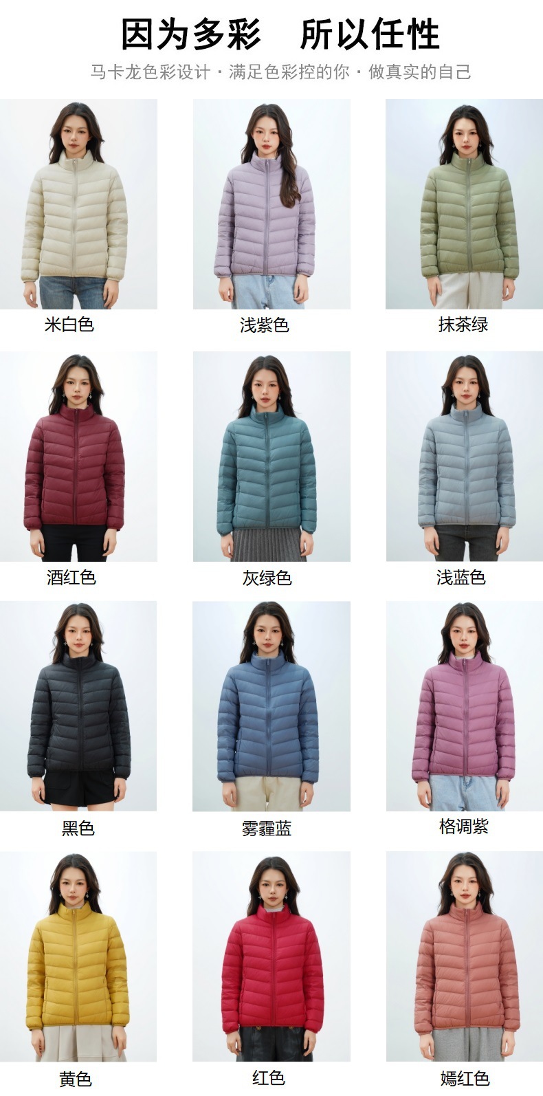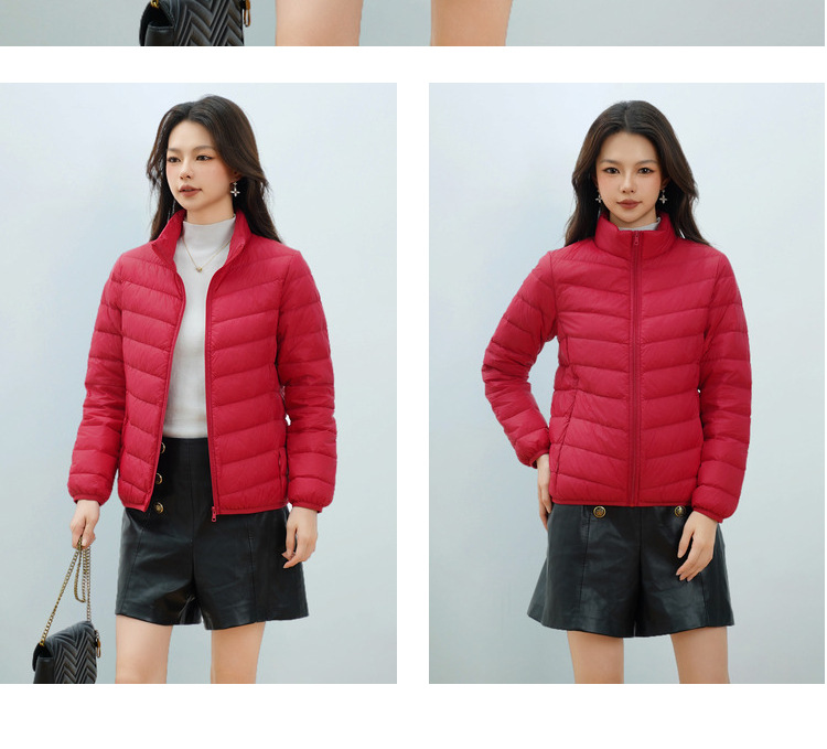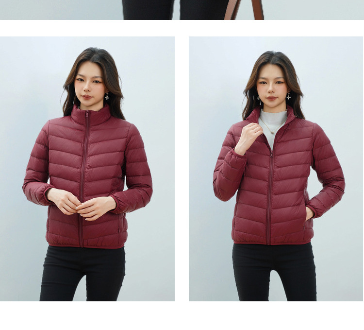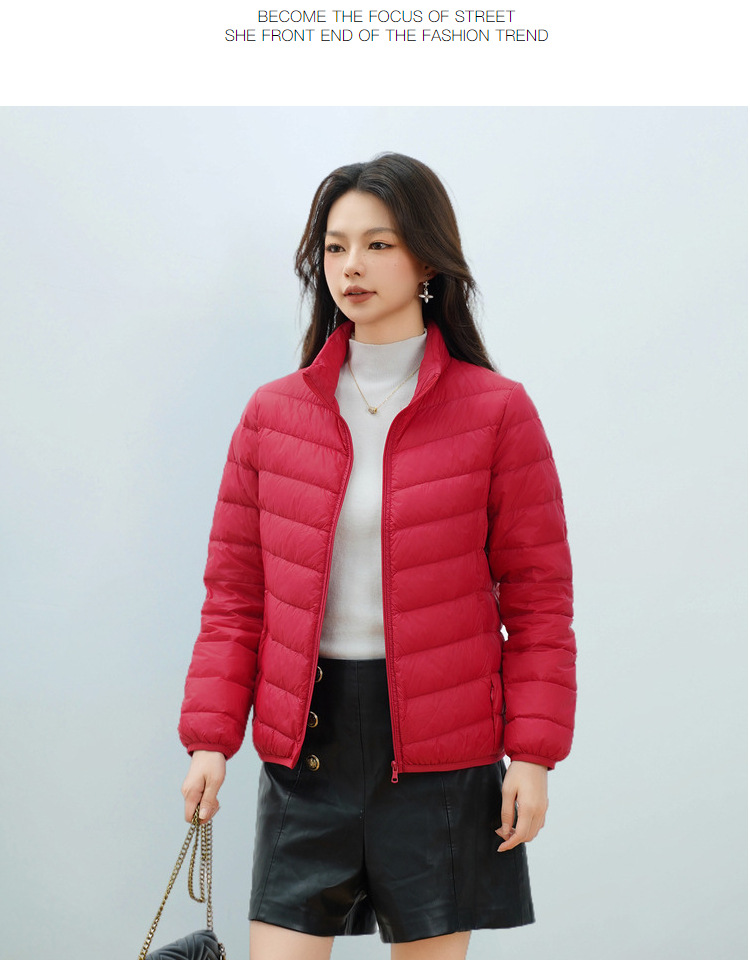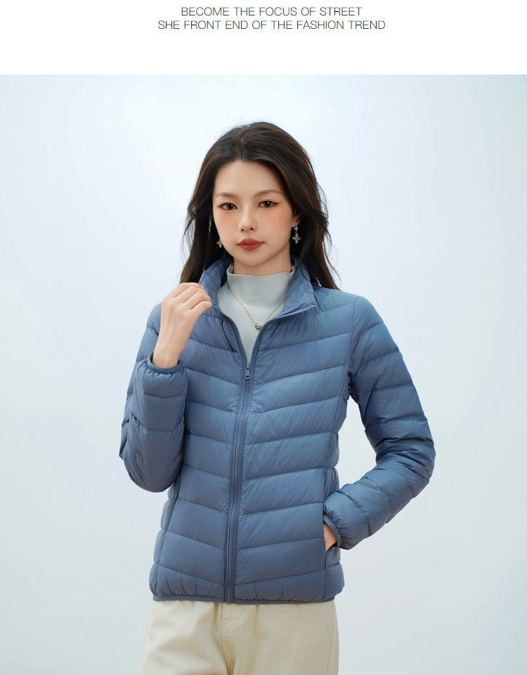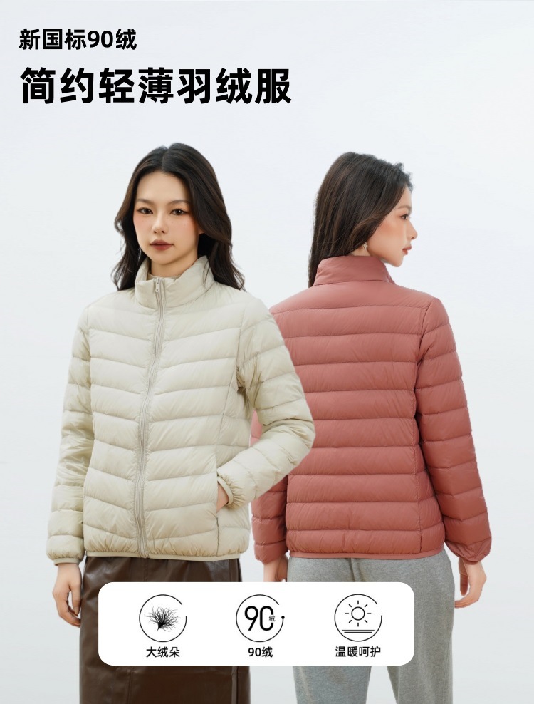 Pinghu Chi 새로운 여성의 새로운 GB 90 다운 간단한 다운 솔리드 컬러 여성용 수직 칼라 여성용 경량 다운 재킷