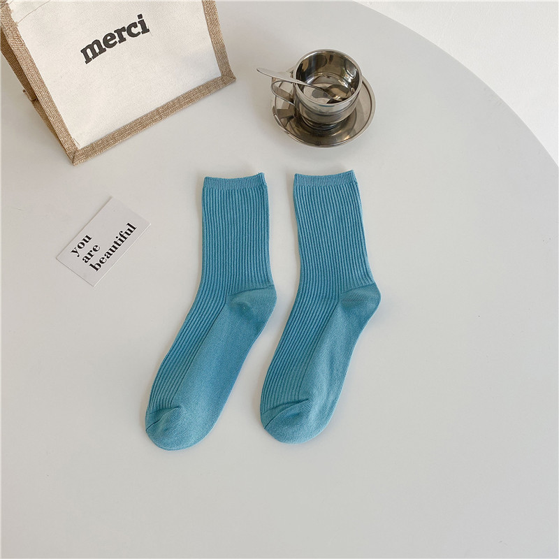 2021 가을과 겨울 그려진 스택 양말 작은 신선한 여성 양말 단색 중간 길이 양말 인스 타 그램 스타일 블루 시리즈 양말스토어 가기
