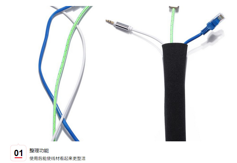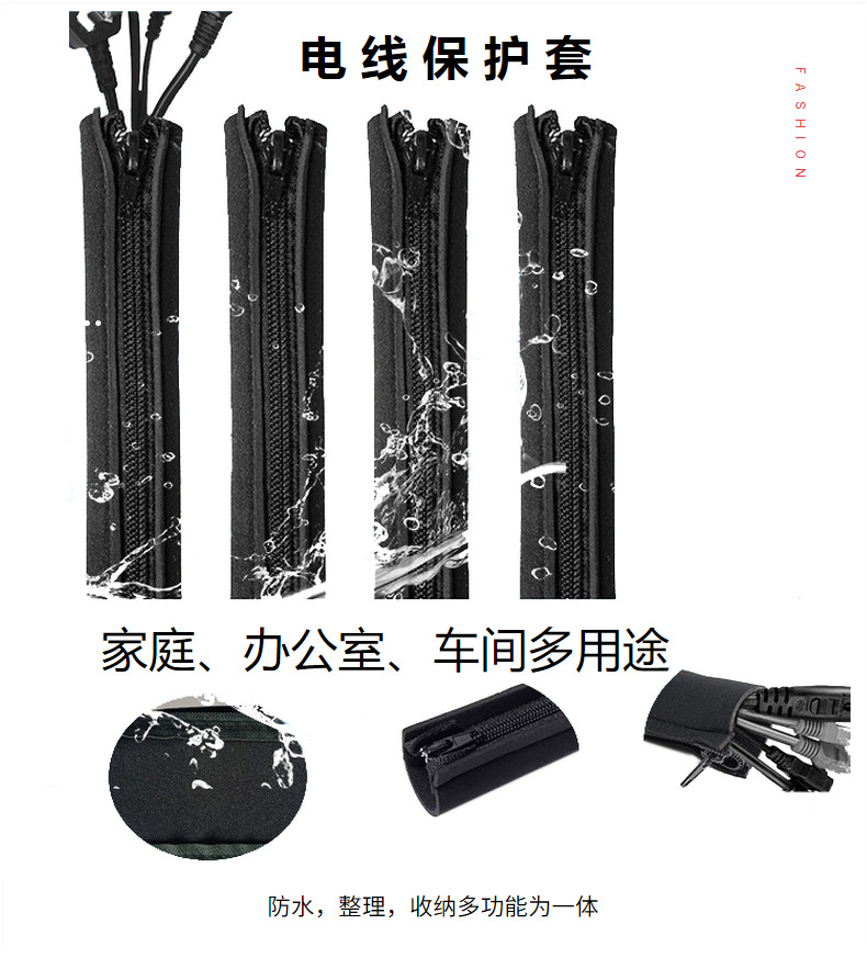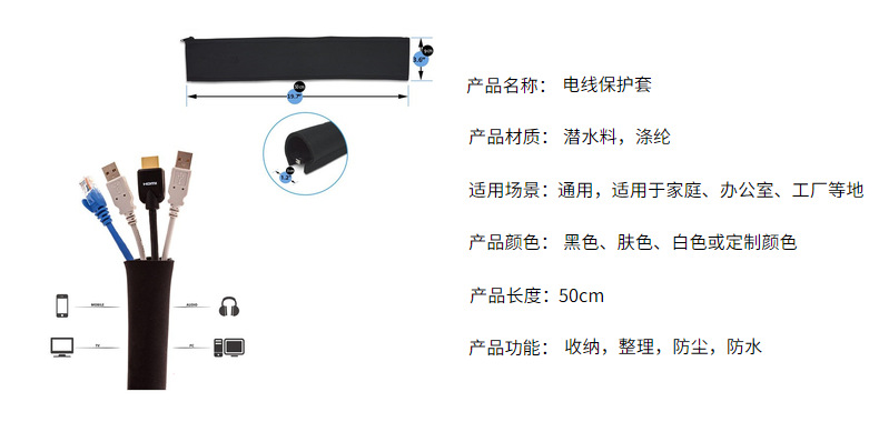 2mm 얇은 지퍼형 전선 보호 커버 다이빙 소재 데스크탑 정리용 전선 커버 TV 홈시어터 케이블 정리용 커버
