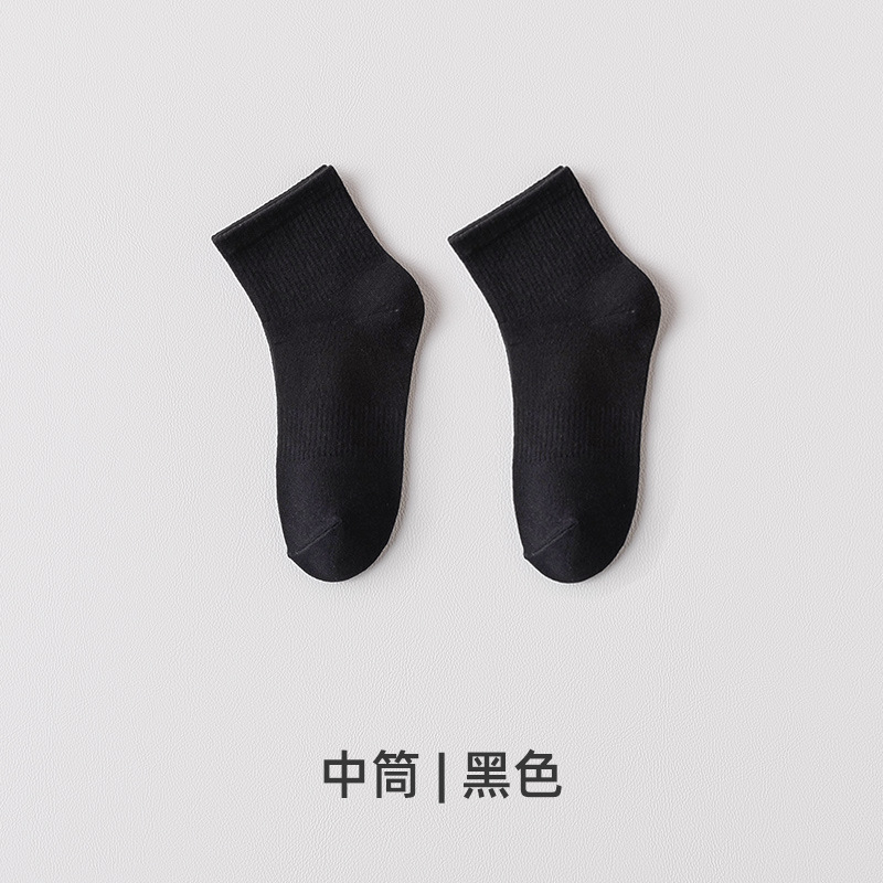 본즈 블랙 면 양말 여성용 중간 길이 양말 가을과 겨울 양말 단색 유행 흰색 스타킹 중간 길이 양말 여성스토어 가기