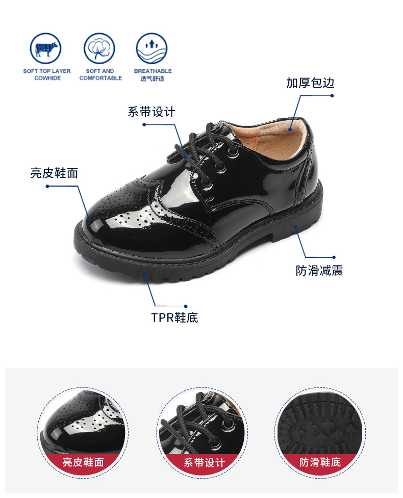 2021 봄과 여름 새 어린이 신발 여자 소년 작은 가죽 신발 어린이 학생 공연 신발 블랙 영국 스타일 단층 신발