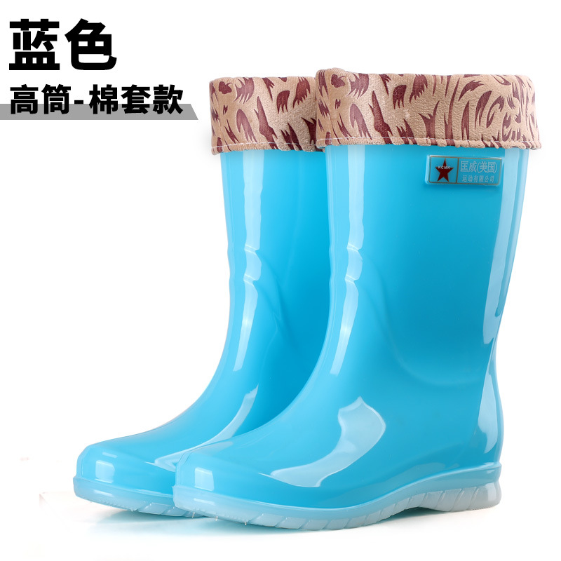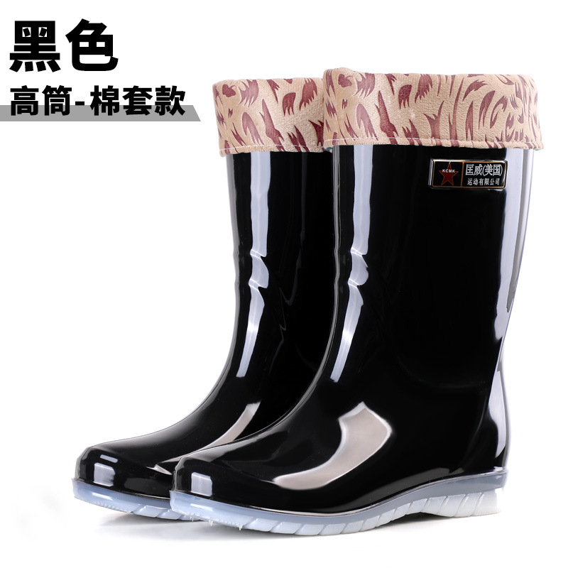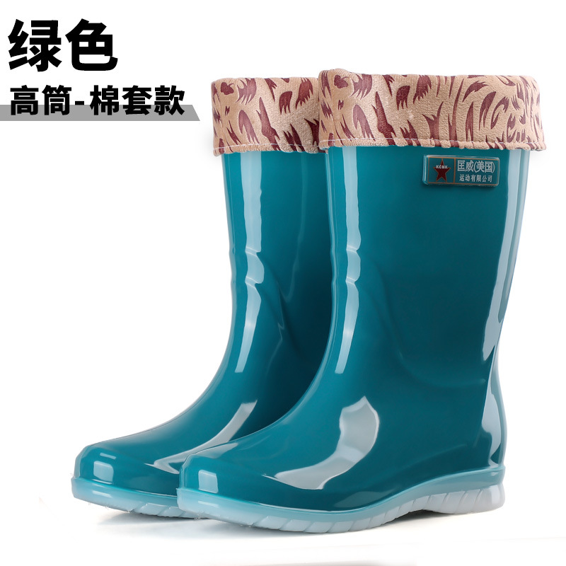 패션 레인 부츠 여성 착용 미끄럼 방지 장화 내마모성 물 신발 방수 고무 신발 도매 기모 물 부츠