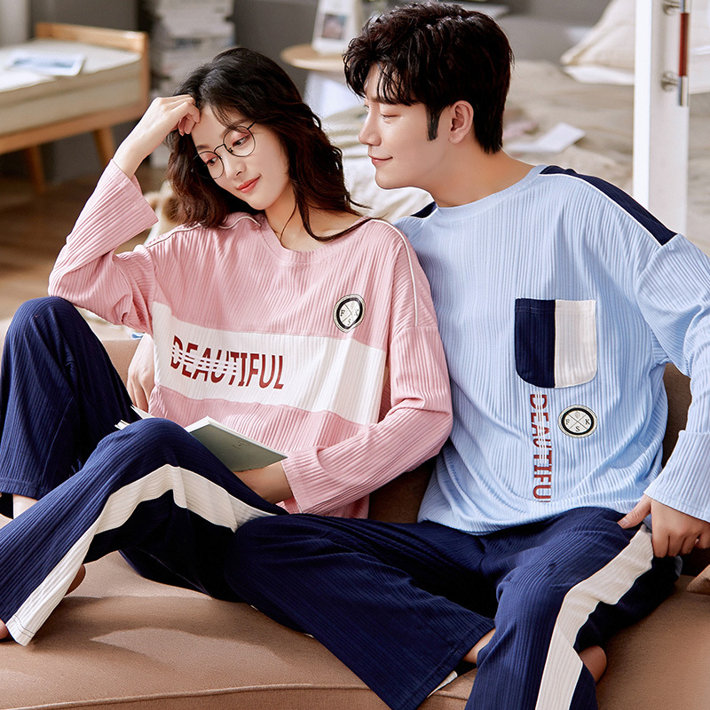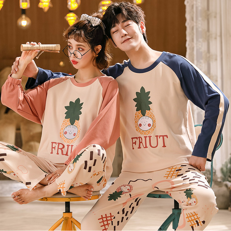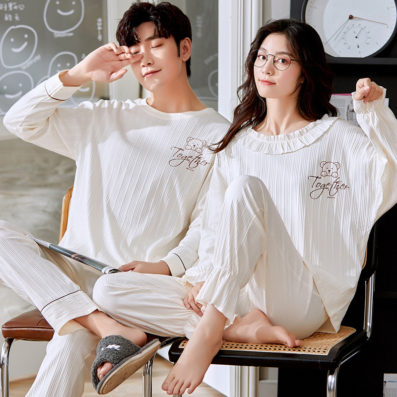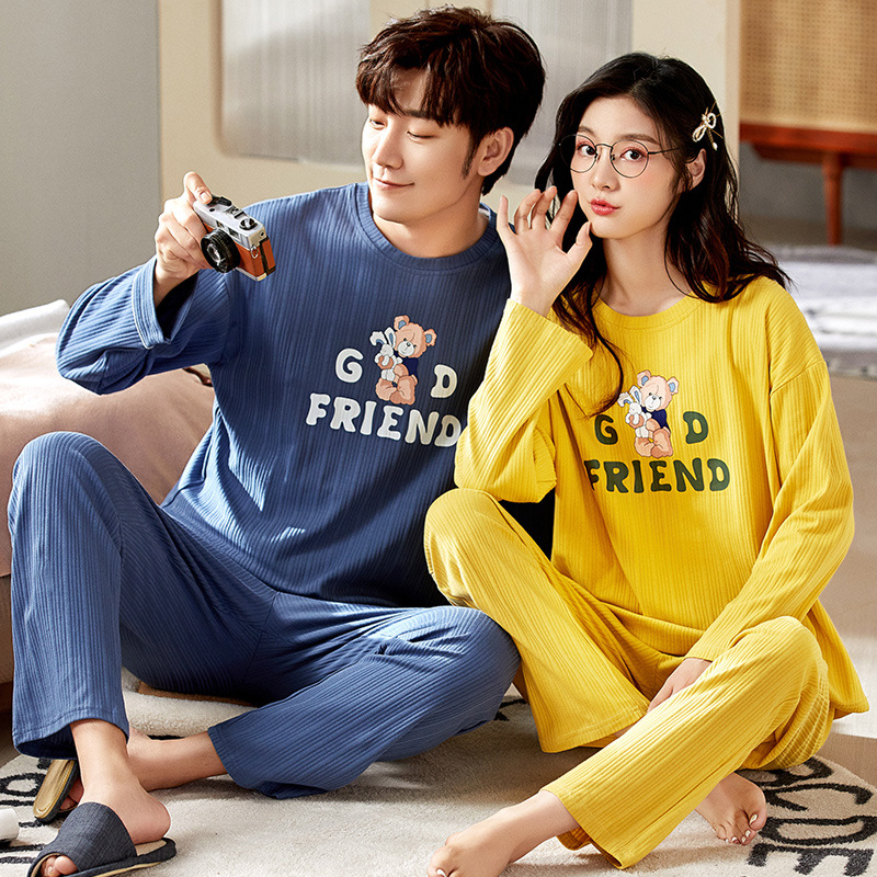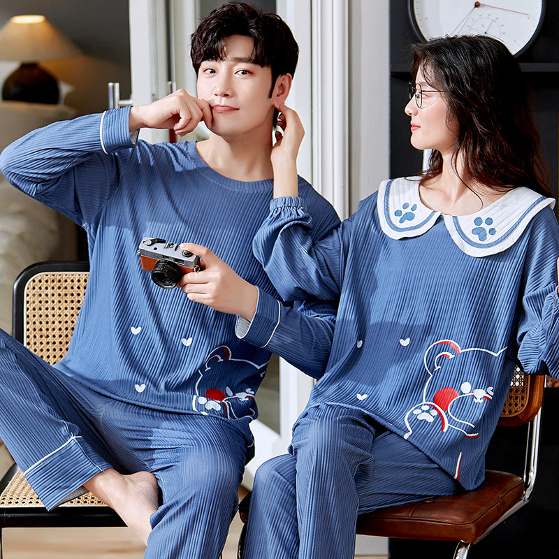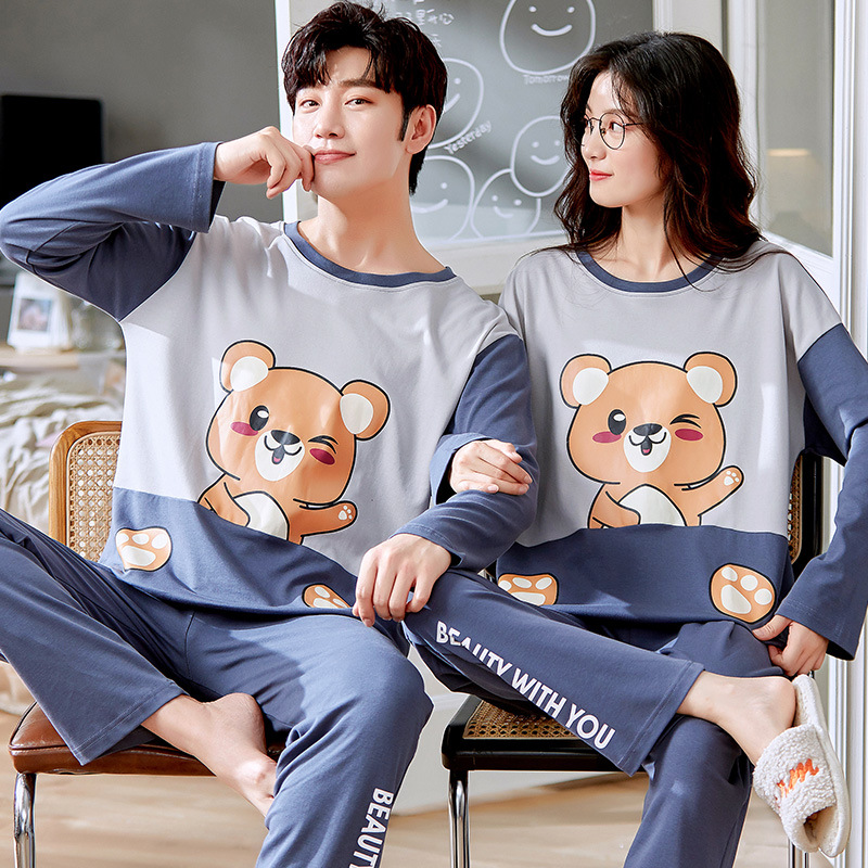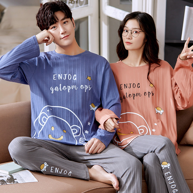 2025 신상 커플 잠옷 여성용 가을 겨울 긴팔 면 귀여운 루즈핏 큰 사이즈 남성용 홈웨어 세트스토어 가기