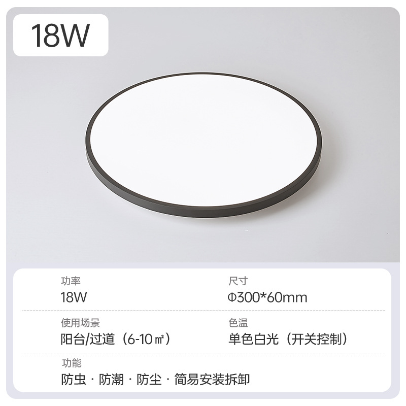 • [하오루이 블랙] 18W Φ300*60mm 백색광