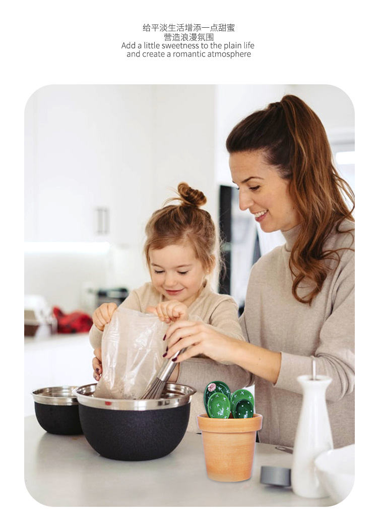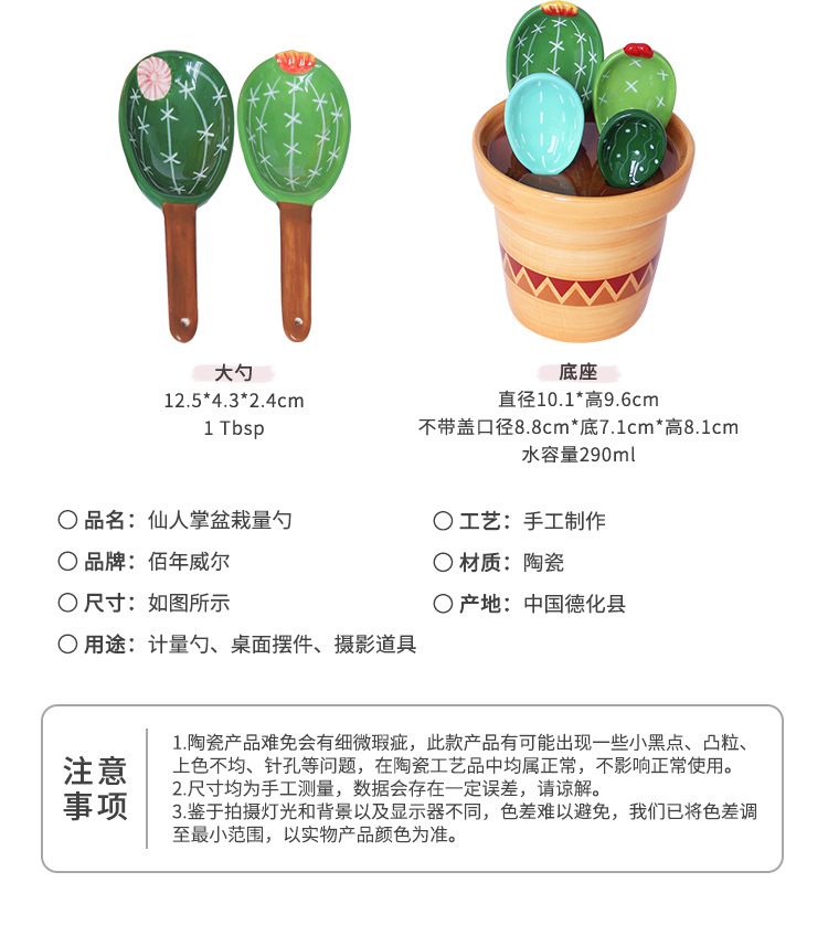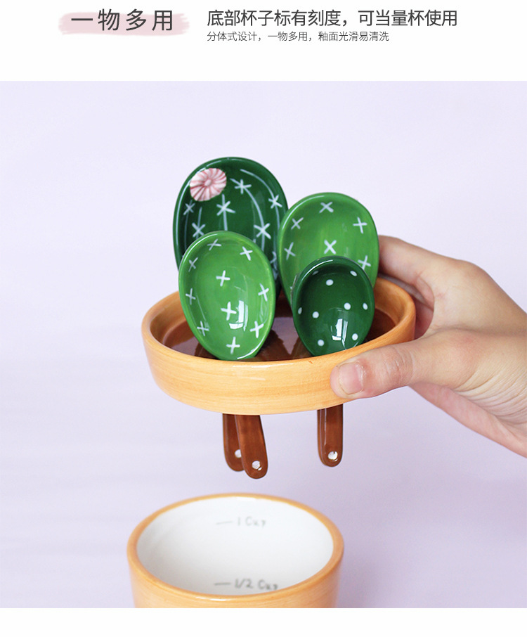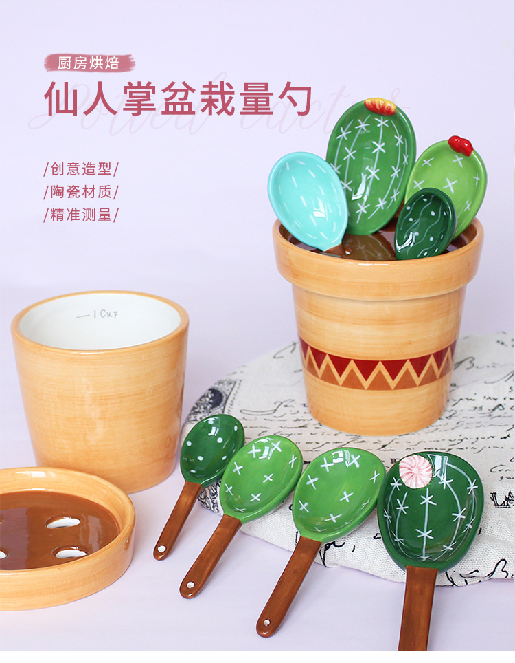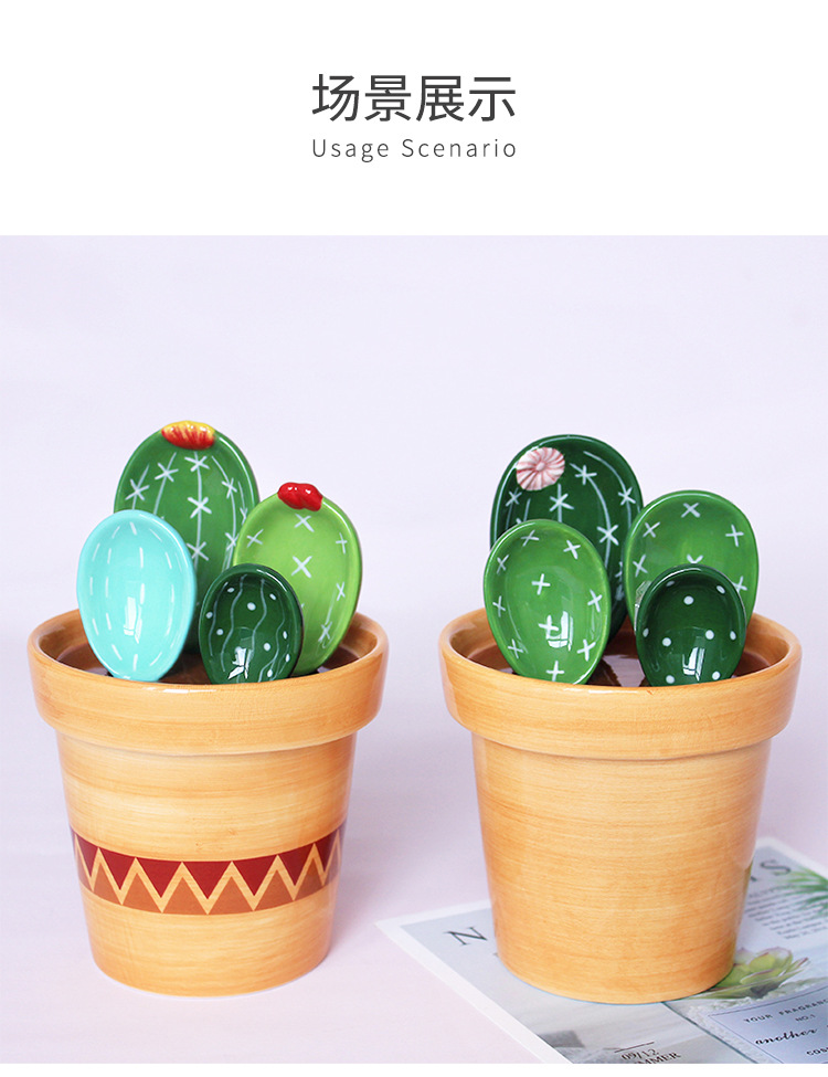 크리 에이 티브 선인장 세라믹 측정 스푼 베이킹 저울 측정 스푼 가정용 주방 세라믹 소금 설탕 베이스가있는 작은 스푼스토어 가기