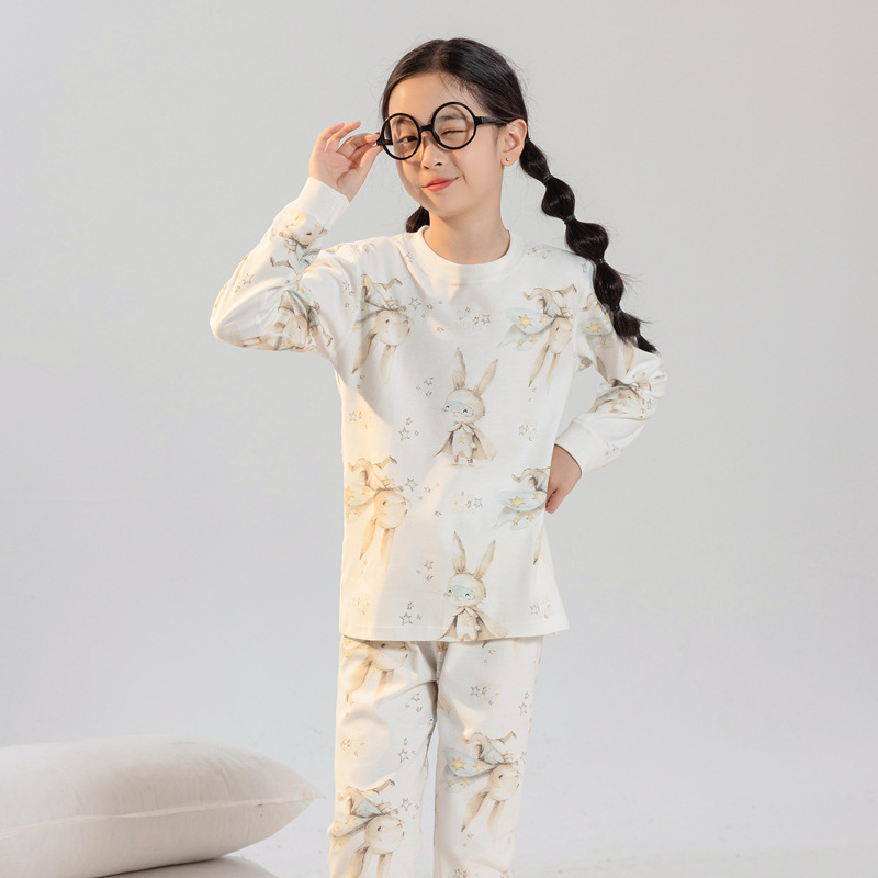 어린이 가을 옷과 바지 세트 A + 따뜻한 속옷 커버 인쇄 된 코튼 울 커버 중간 및 큰 어린이 아기 내부 드레싱