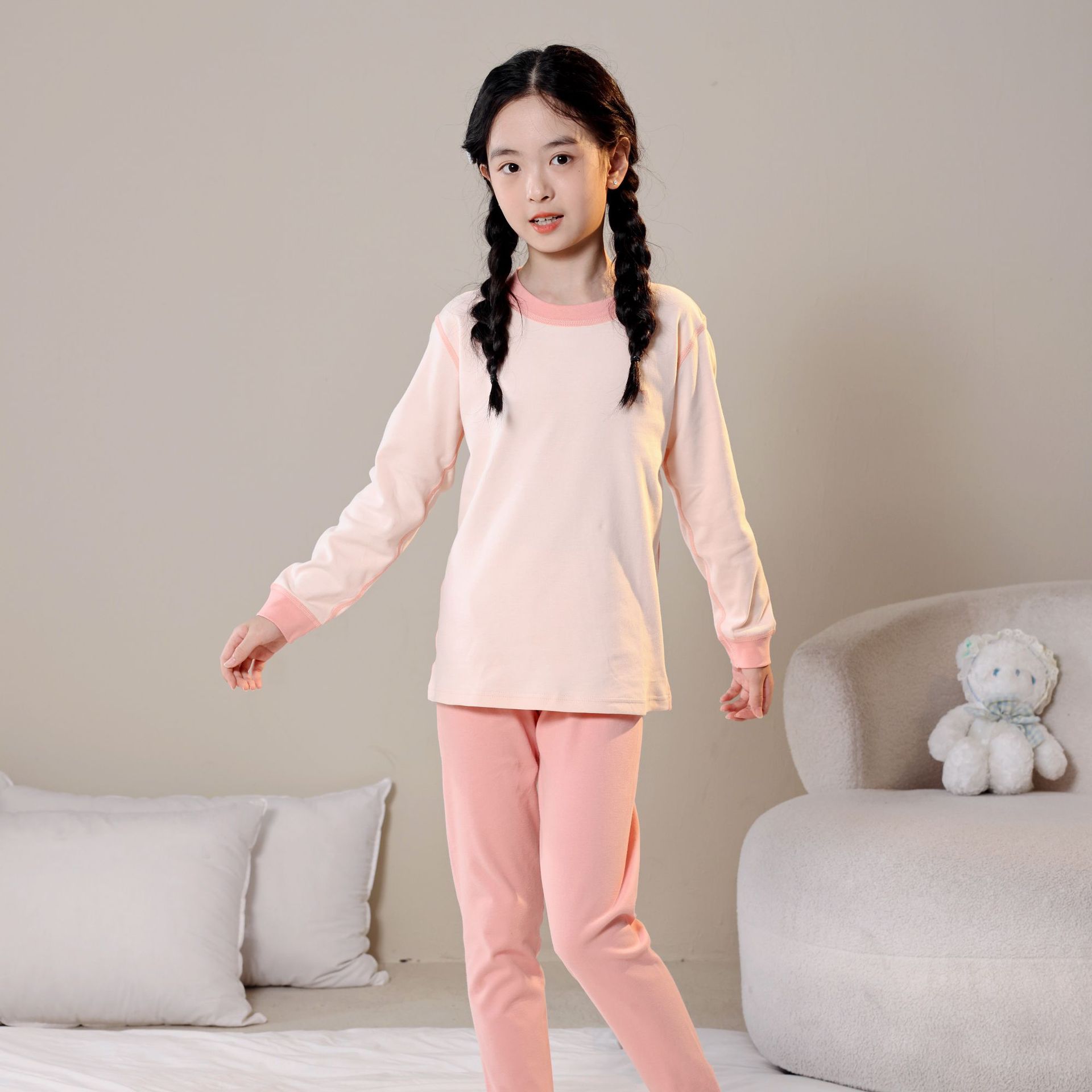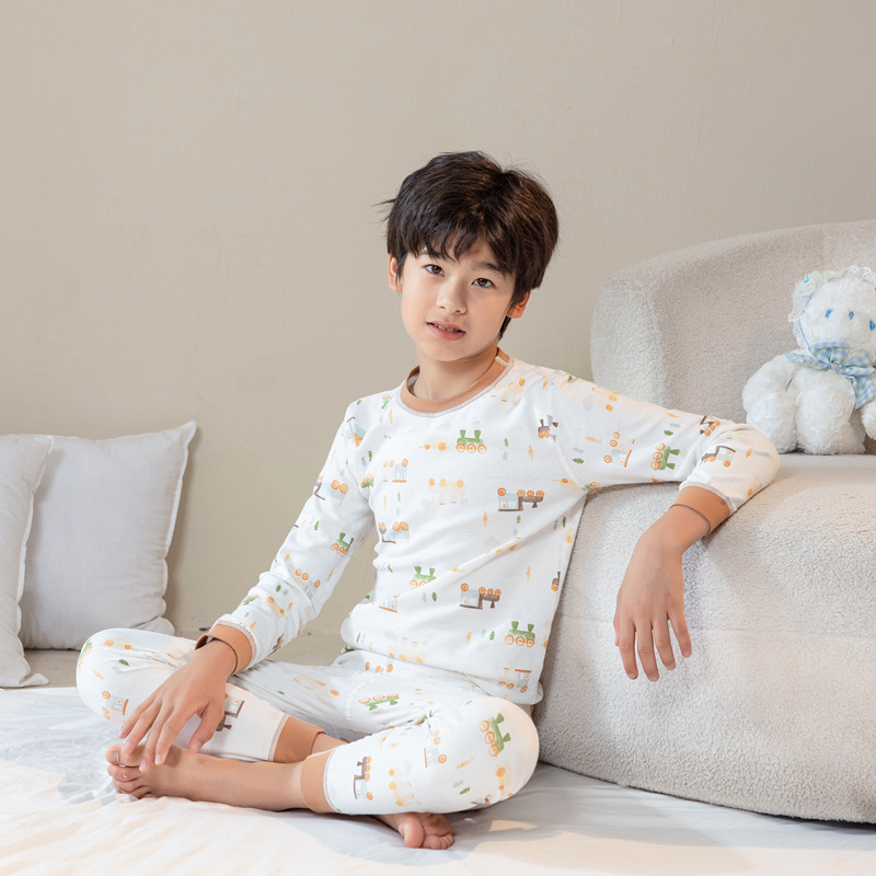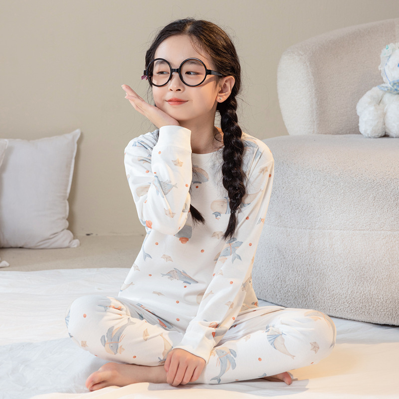 어린이 가을 옷과 바지 세트 A + 따뜻한 속옷 커버 인쇄 된 코튼 울 커버 중간 및 큰 어린이 아기 내부 드레싱스토어 가기