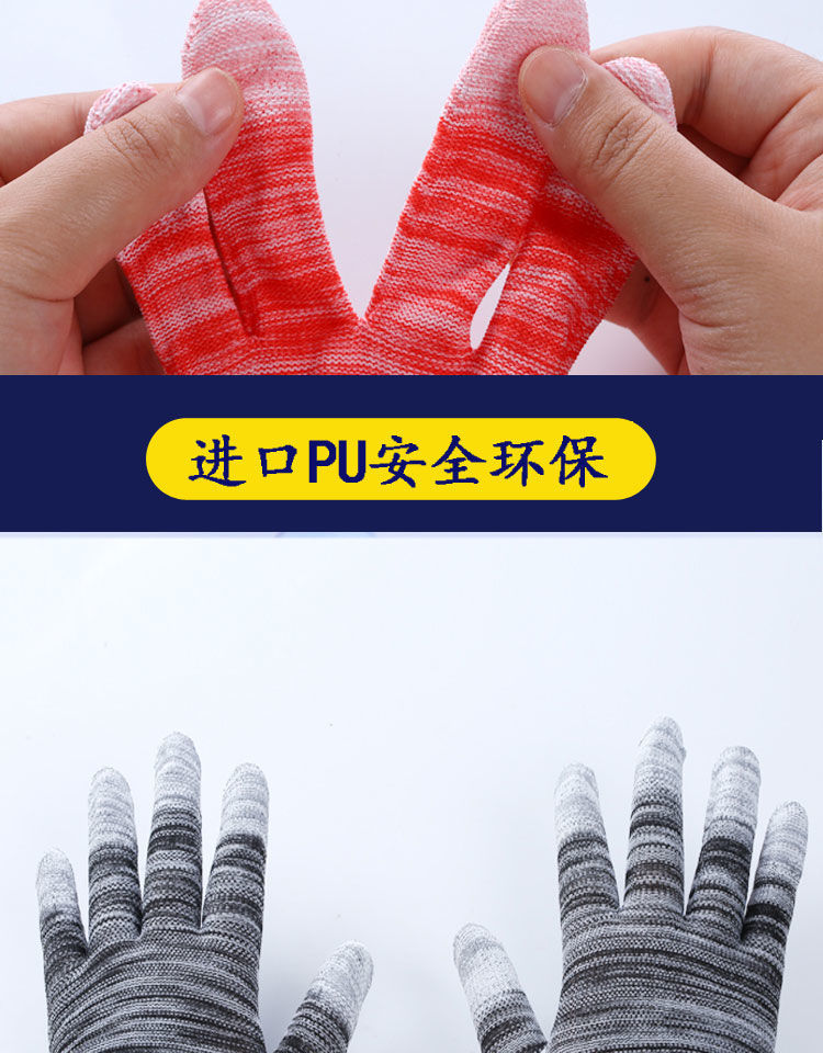 손가락 코팅 장갑 노동 보호 13 핀 폴리 에스테르 내마모성 미끄럼 방지 PU 코팅 장갑 먼지 없는 전자 공장 작업 보호 장갑스토어 가기