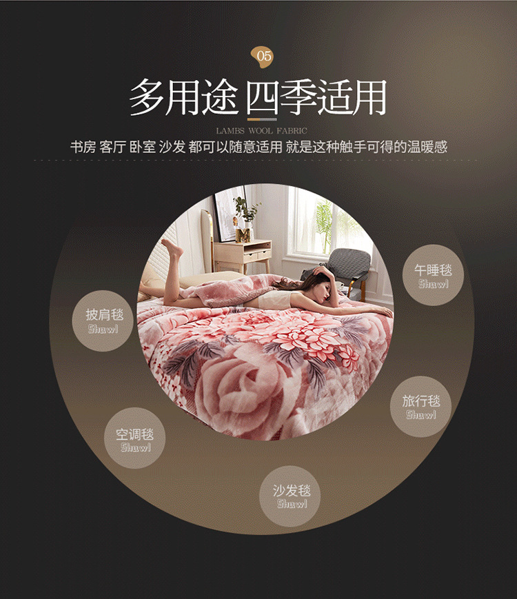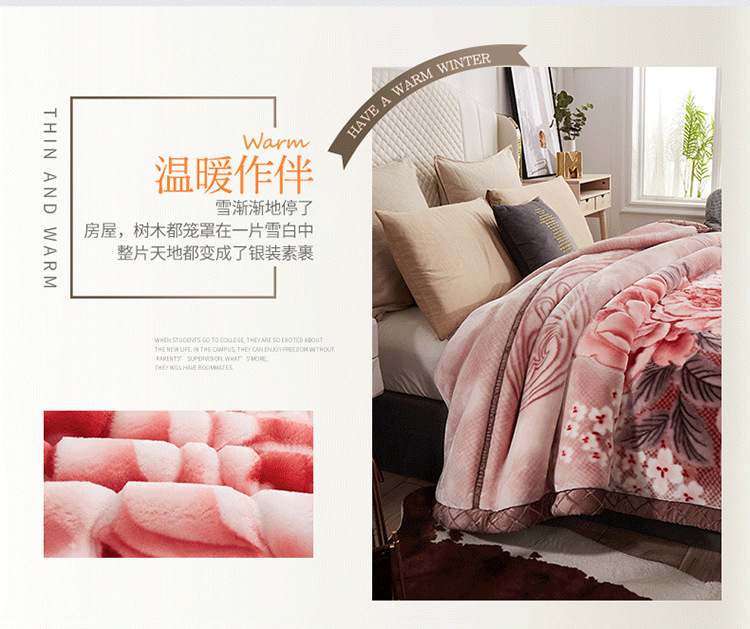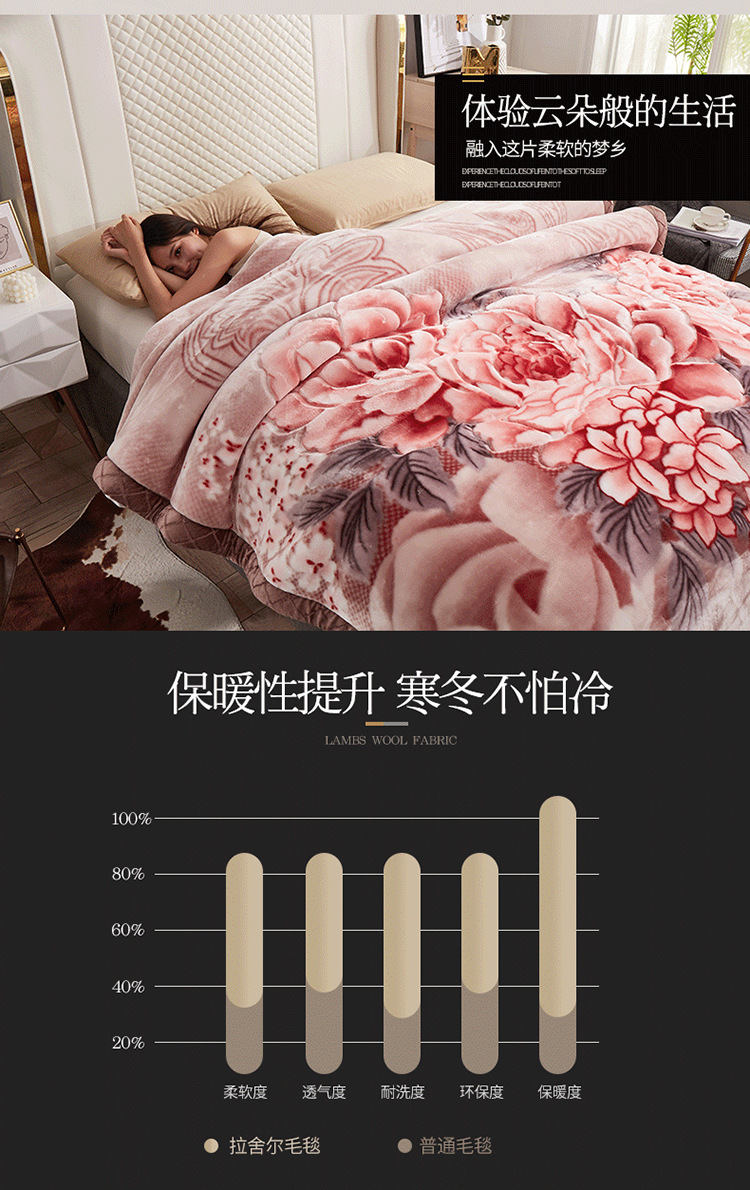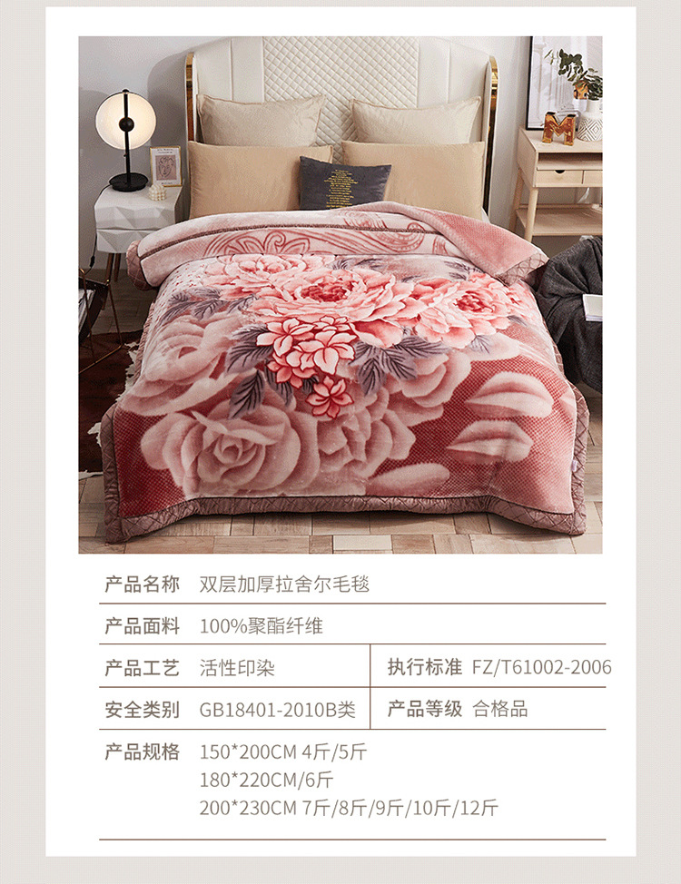 毛毯尺寸裁剪均为机器裁剪,尺寸误差很小,因为拉舍尔毛毯为双层毛毯,包边缝纫会对面料有一个拉扯的应力,准确测量成品尺寸时需要两人扯直测量!介意勿拍!