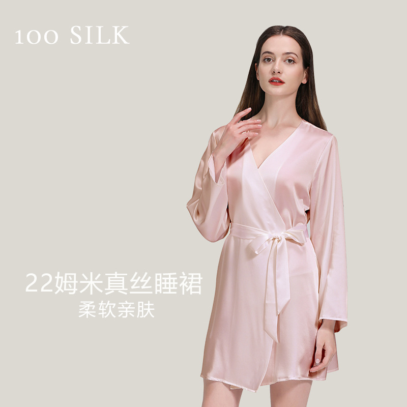 코코니 실크 잠옷 봄 여름 허리 조임 숏 가운 100% 뽕나무 실크 잠옷 섹시한 슬립 드레스 홈웨어