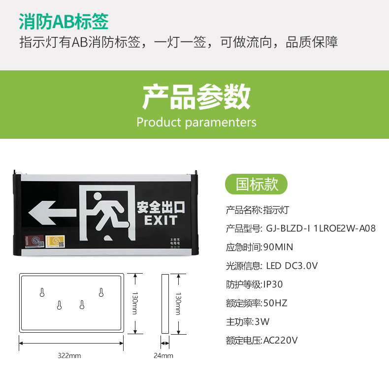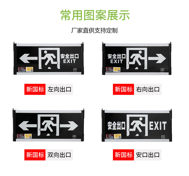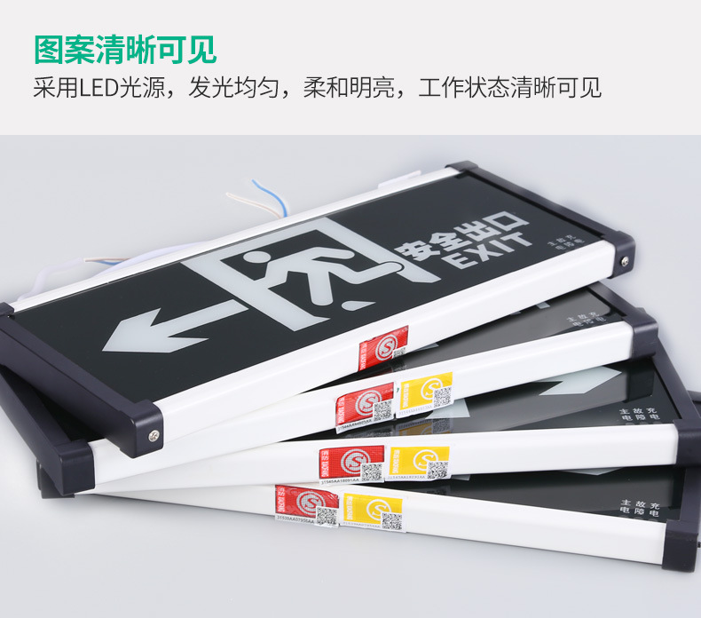 此链接产品全部都是国标款,包过消防,证书齐全,两年质保;如下单数量十个以内,可以下单闪银款,闪银款物流途中不易损坏,玻璃的安全出口下单数量越少运输途中越容易坏,感谢合作!