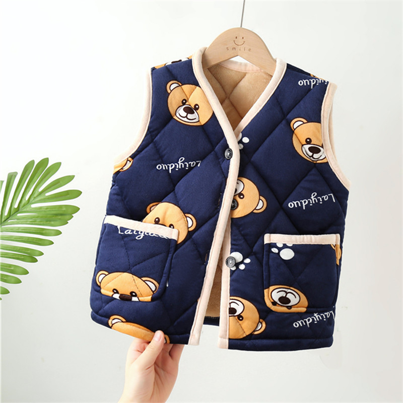 어린이 조끼 가을과 겨울 3 층 면 기모 두꺼운 여자의 조끼 소년의 플란넬 아기의 어깨 조끼