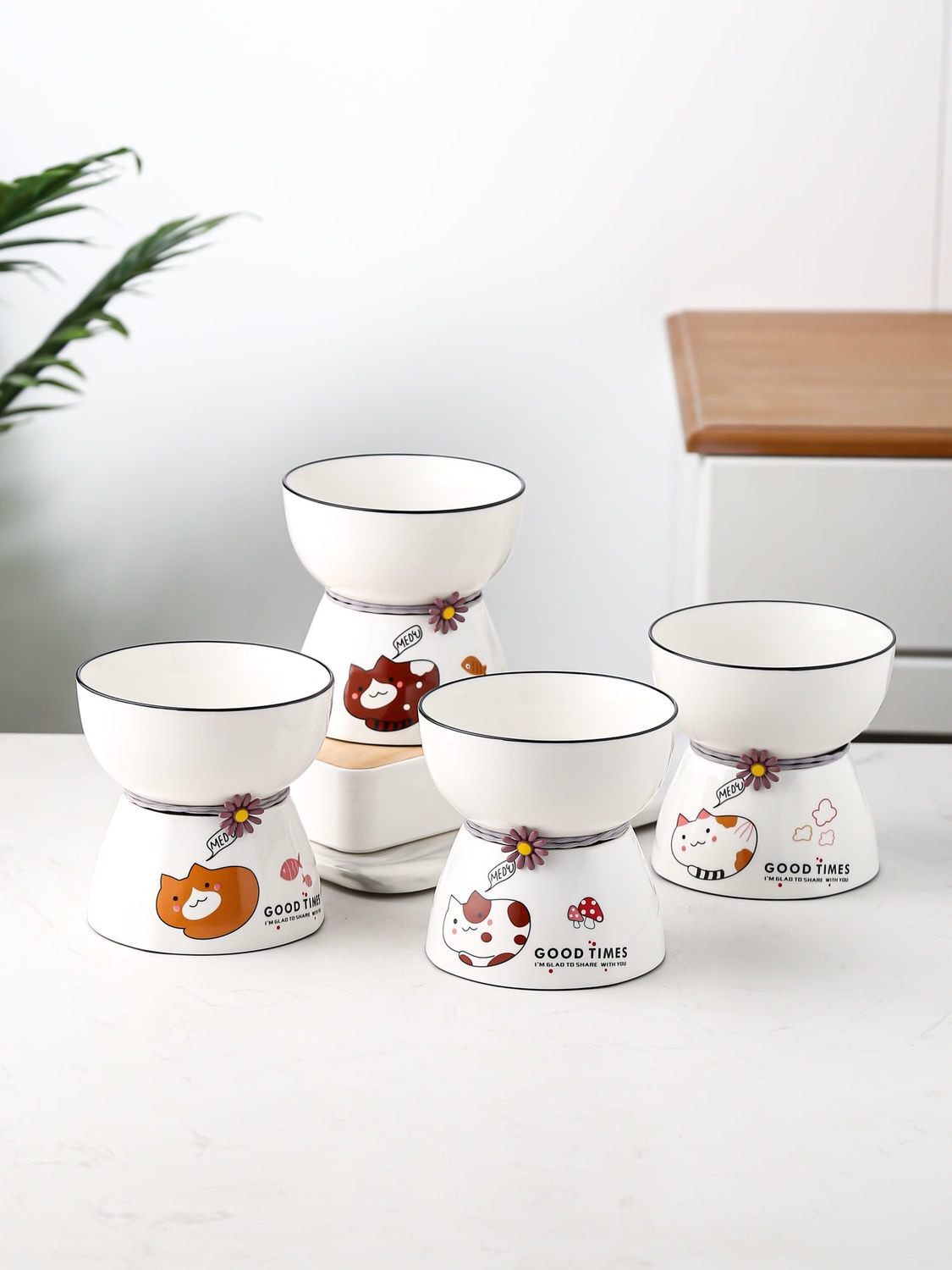 고양이 밥그릇 세라믹 높이 조절 애완동물 고양이 강아지 사료 보호 목뼈 보호 물그릇 이중 그릇 고양이 애완동물 선물스토어 가기
