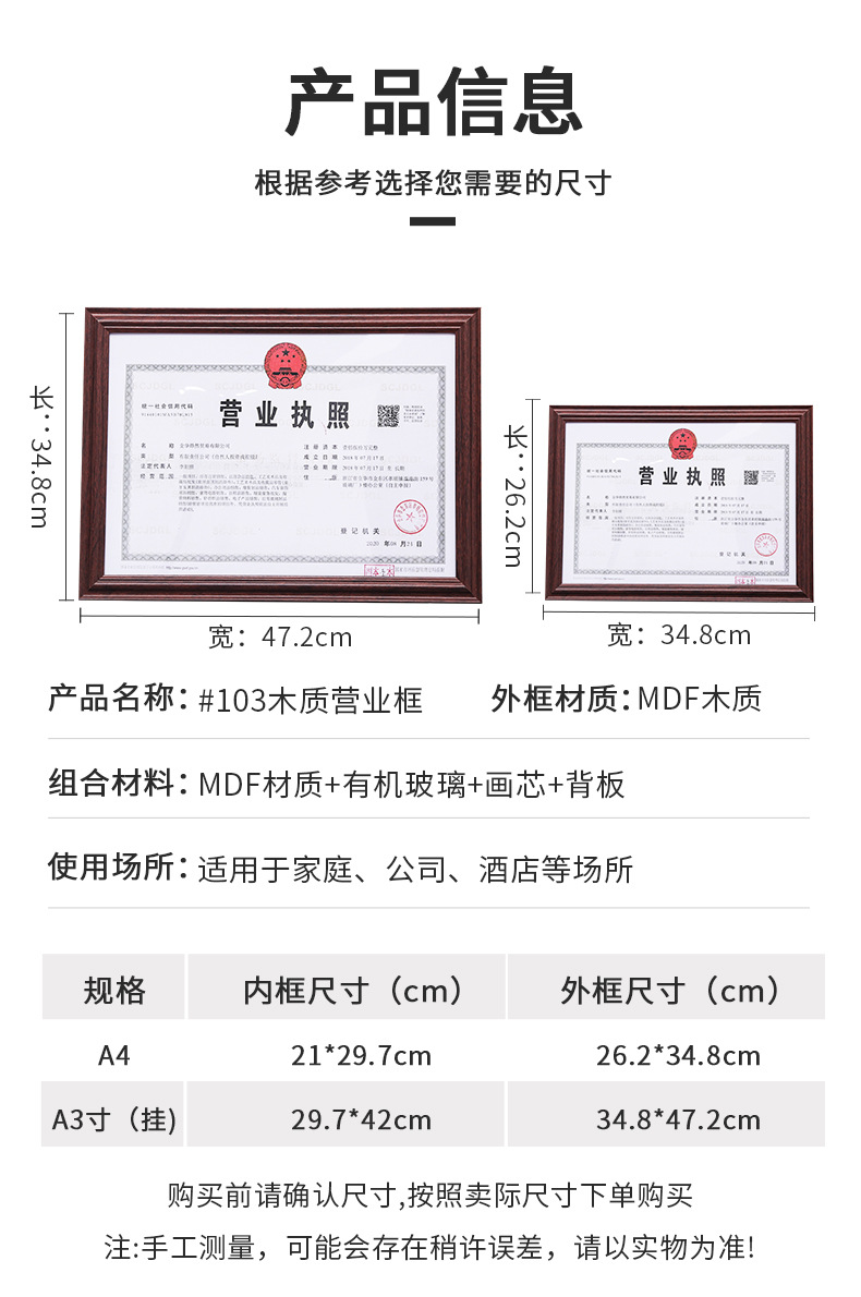 사업 면허 오리지널 프레임 어린이 나무 액자 탑재 A4 인치 증명서 프레임 A3 포토 프레임 벽 도매스토어 가기