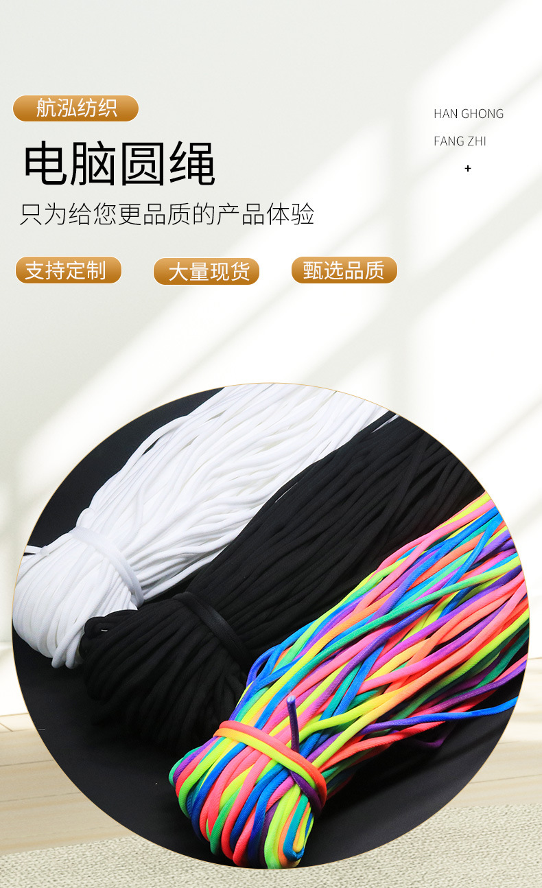 로프 제조업체 컴퓨터 자카드 원형 로프 3mm 코어 팩 로프 바지 로프 모자 로프 헤드 로프 5mm 스웨트 셔츠 로프 졸라매는 끈