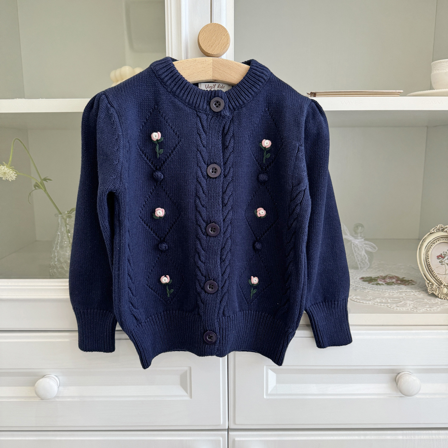 Virgil키즈 새로운 소녀 수 놓은 스웨터 어린이 자수 크로 셰 뜨개질 울 코트스토어 가기
