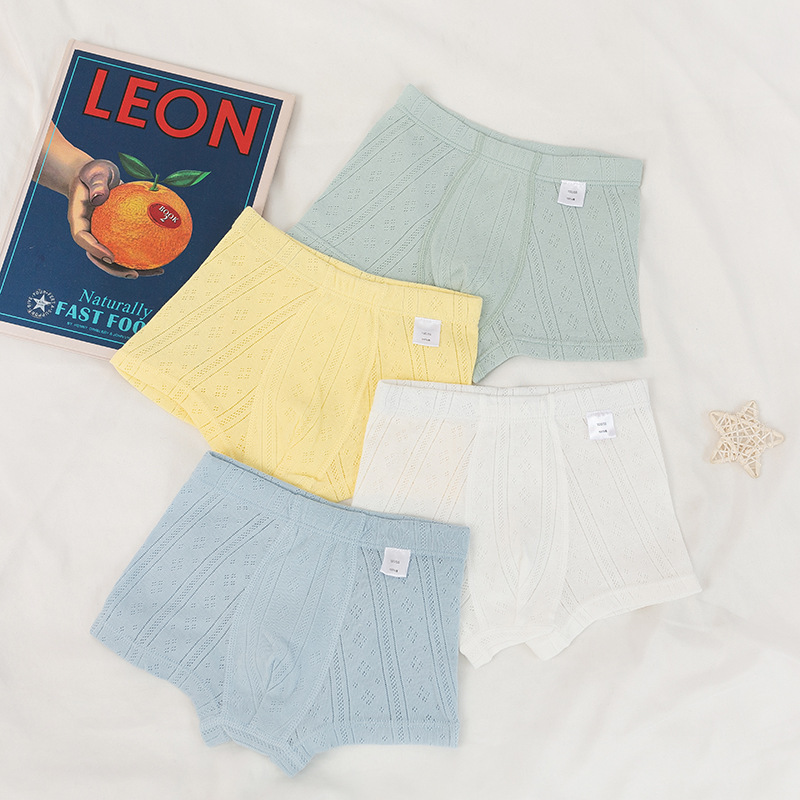 여름 통기성 어린이 속옷 복서 삼각형 남아 여아 아기 반바지 호흡 면 메쉬 4 코너 아기 속옷스토어 가기