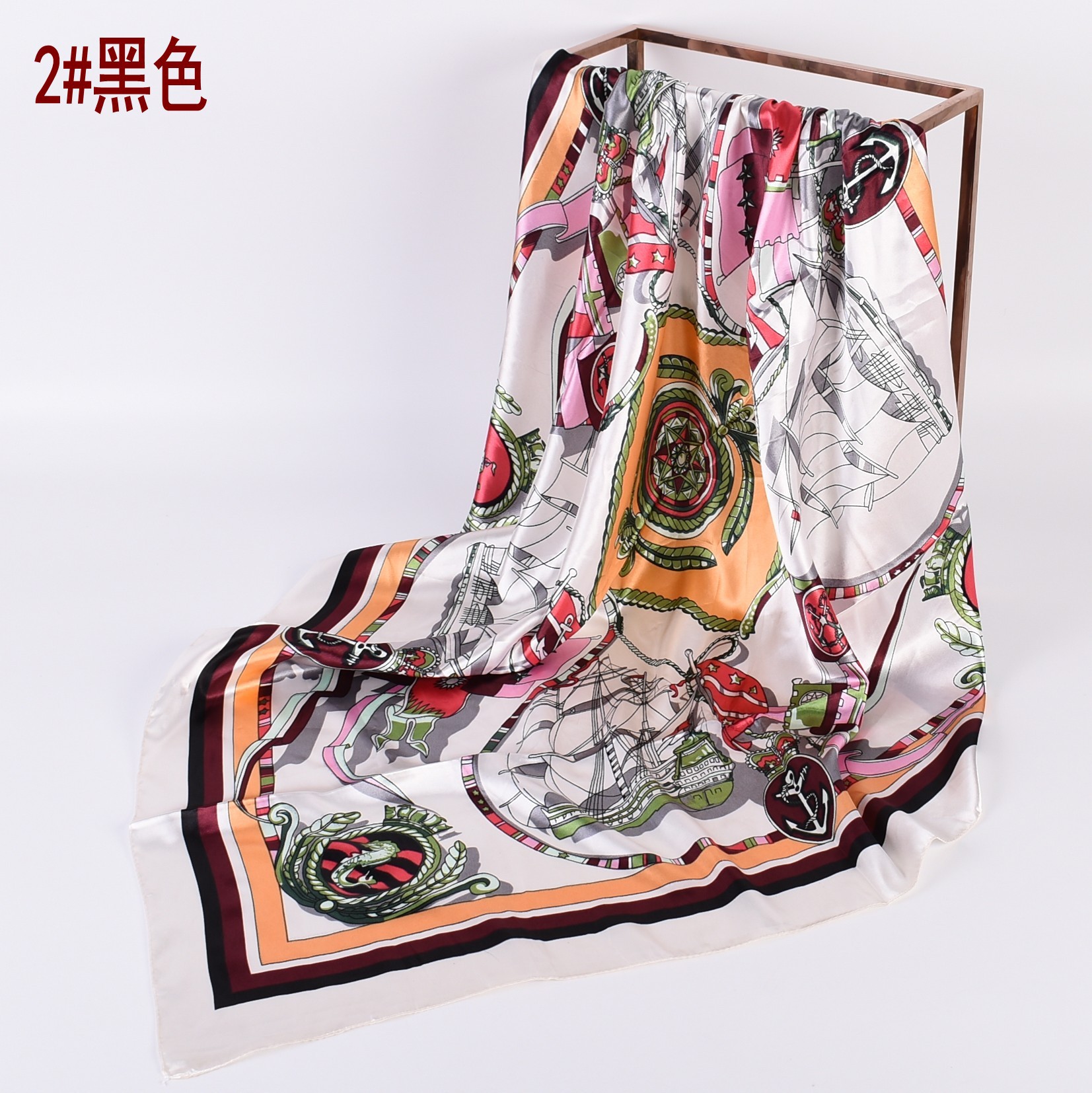 가을 새로운 달콤한 작은 신선한 90 대형 사각형 스카프 패션 일반 인쇄 새틴 여성 실크 스카프 스카프 도매