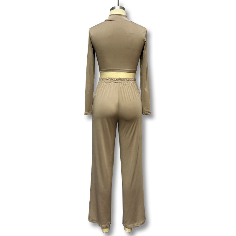 레저 홈 스포츠 세트 여성의 크로스 보더 유럽과 미국 스타일 2023 여름과 가을 새로운 여성의 긴 소매 넓은 다리 세트 도매스토어 가기