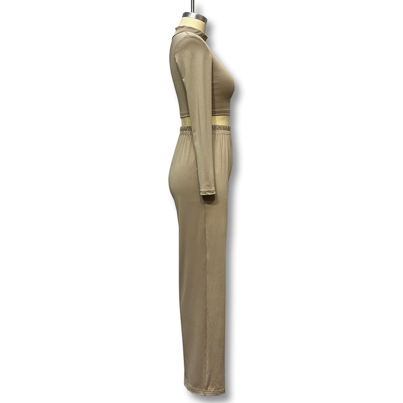 레저 홈 스포츠 세트 여성의 크로스 보더 유럽과 미국 스타일 2023 여름과 가을 새로운 여성의 긴 소매 넓은 다리 세트 도매