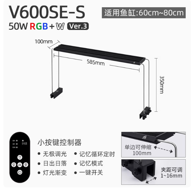 [신간] 웰컴 수족관 램프 물고기 탱크 조경 타이밍 디밍 전체 스펙트럼 램프 패널 LED 수륙 양용 브래킷 램프스토어 가기