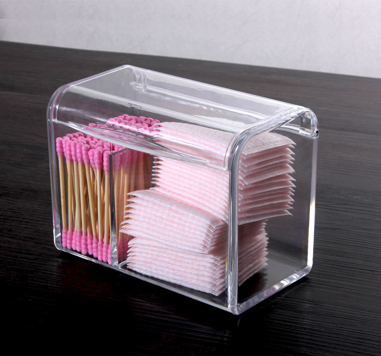 클램쉘 아크릴 면봉 보관 튜브 투명 화장품 보관함 뚜껑이있는 방진 면봉 보관함
