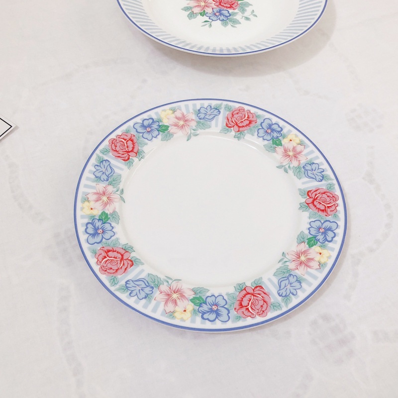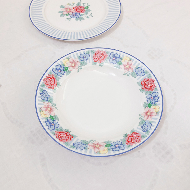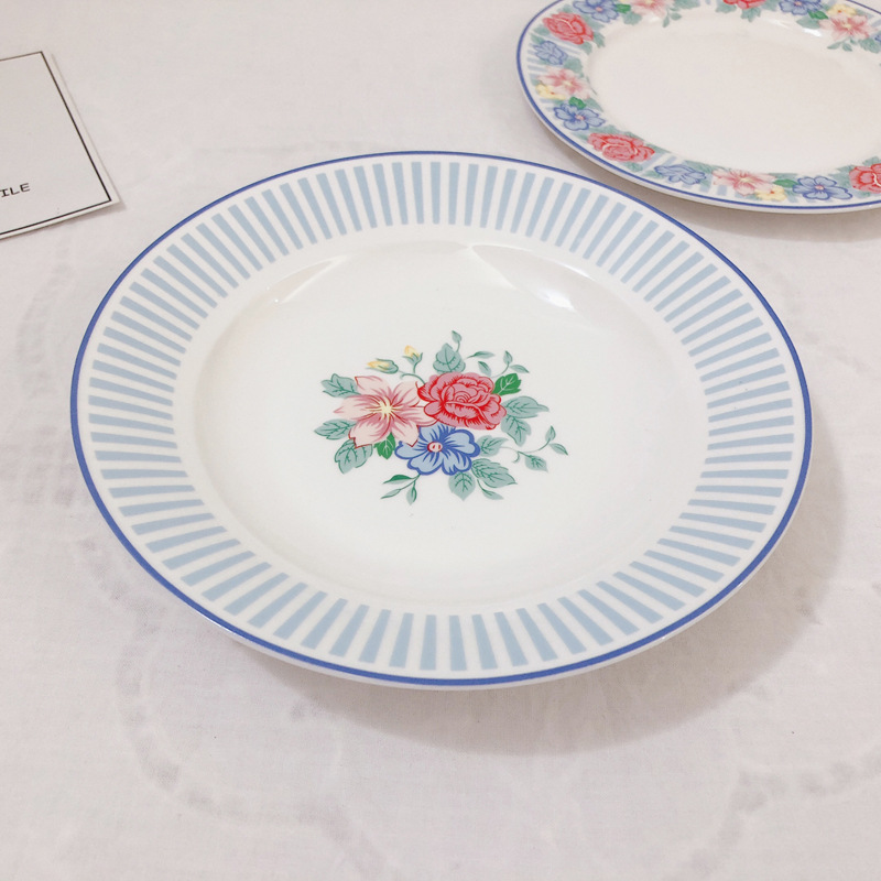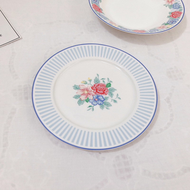 한국 인 빈티지 스트라이프 플라워 세라믹 서양 음식 플랫 플레이트 과일 플레이트 케이크 스테이크 디저트 플레이트 Pagat 수프 플레이트