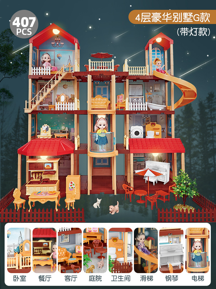 공주 집 소꿉놀이 장난감 시뮬레이션 공주 성 빌라 어린이 생일 선물 인형 집 DIY 성스토어 가기