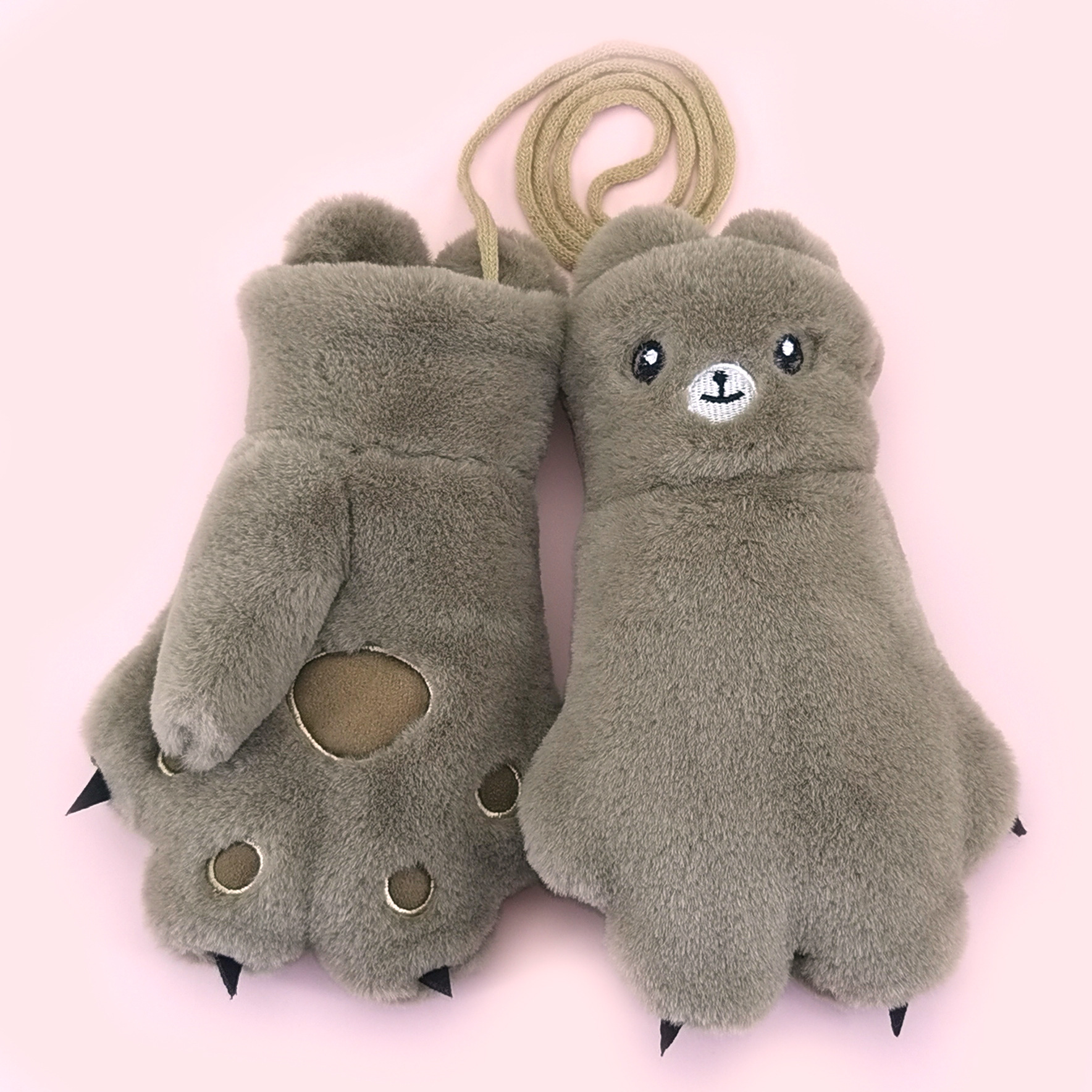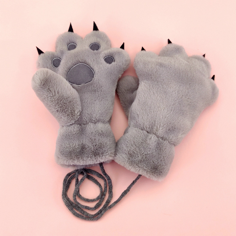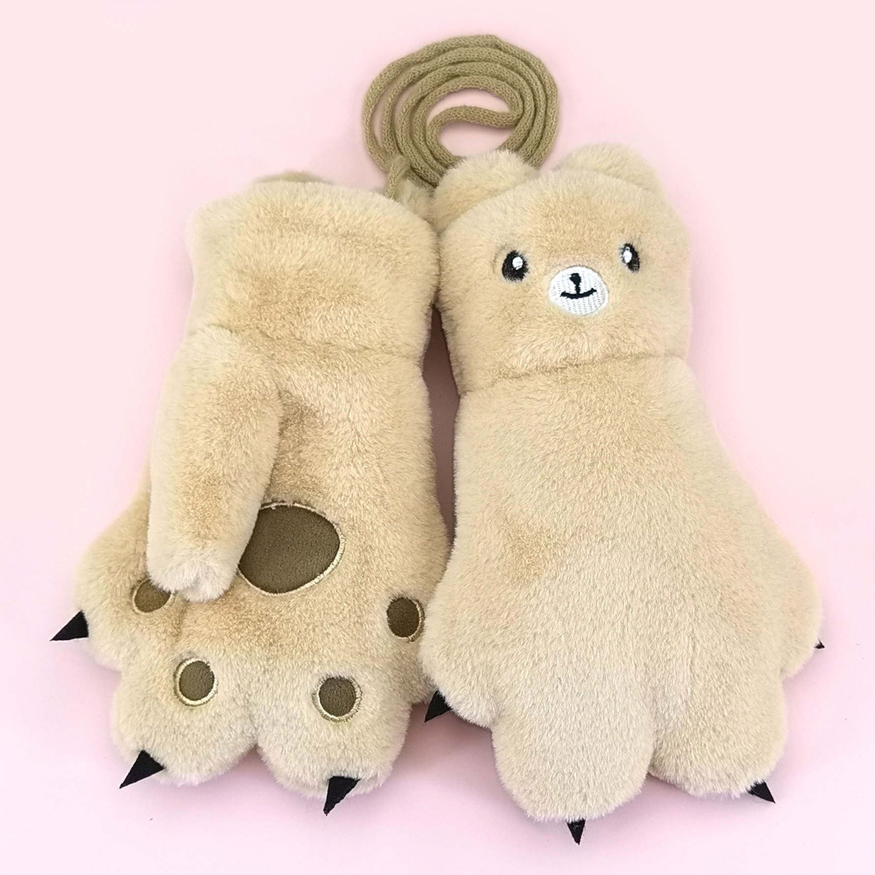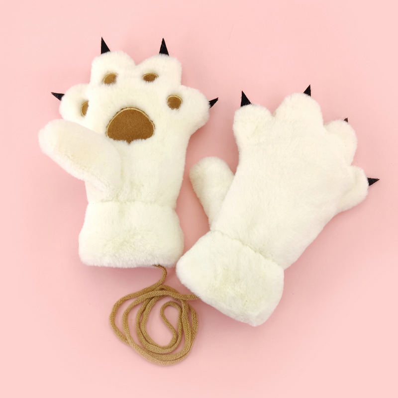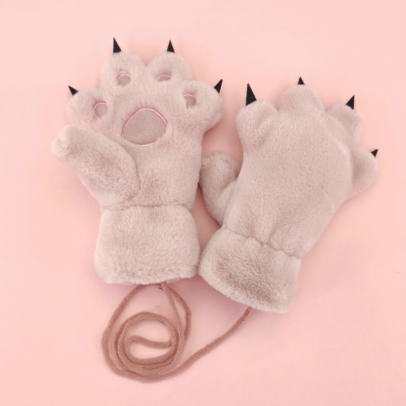 새로운 곰 발바닥 겨울 어린이 따뜻한 장갑 플러스 벨벳 두꺼운 귀여운 만화 큰 어린이 플러시 장갑 고양이 발톱 자수스토어 가기