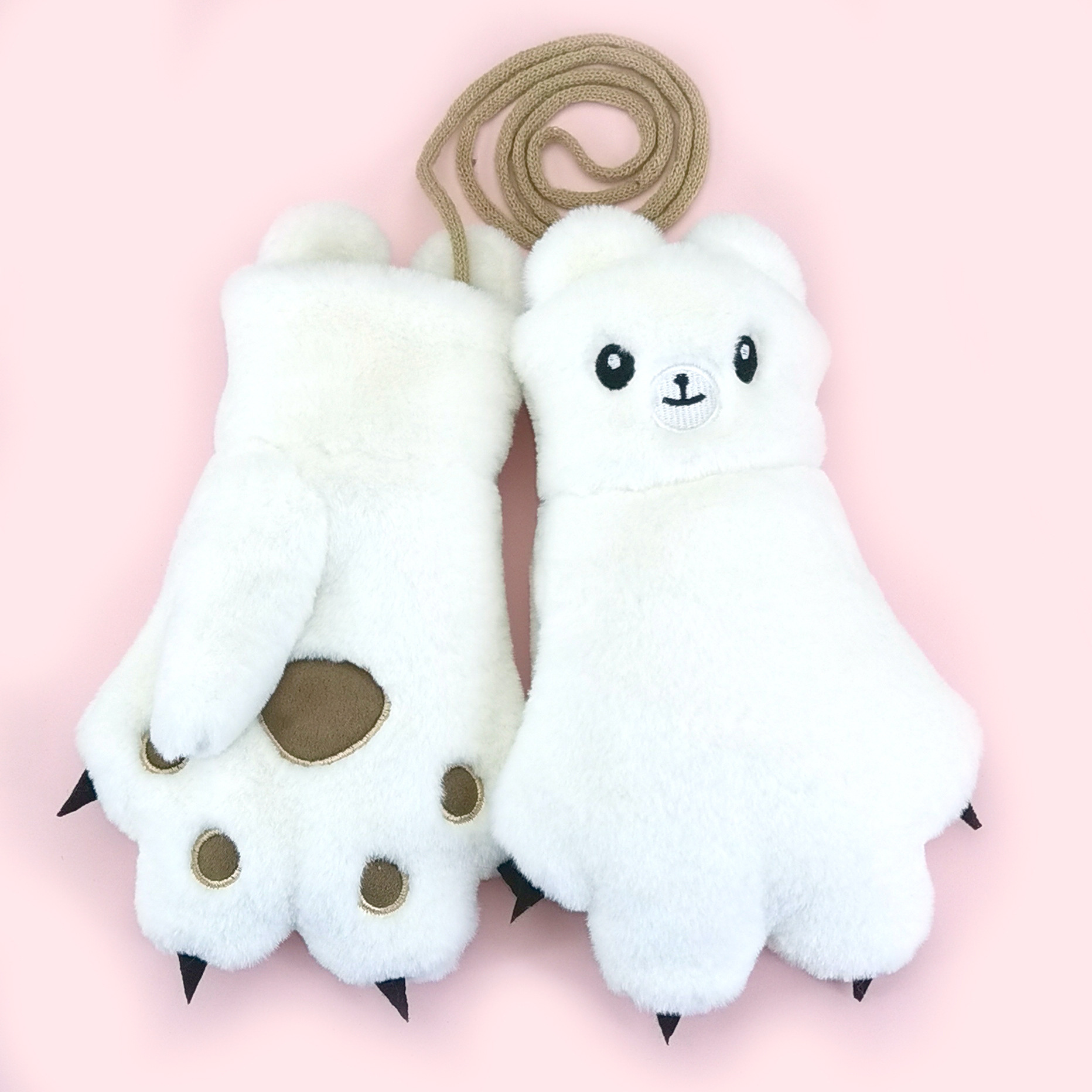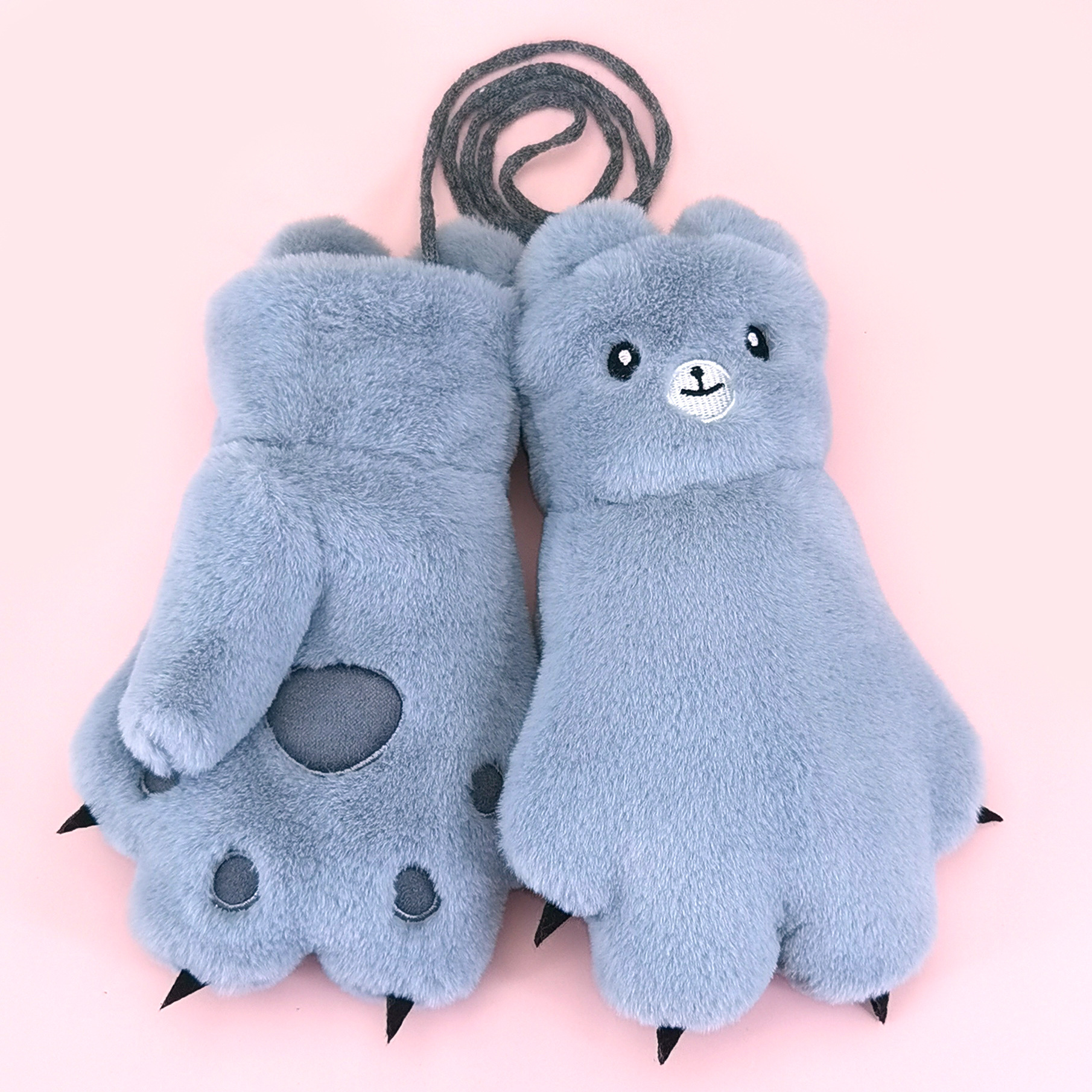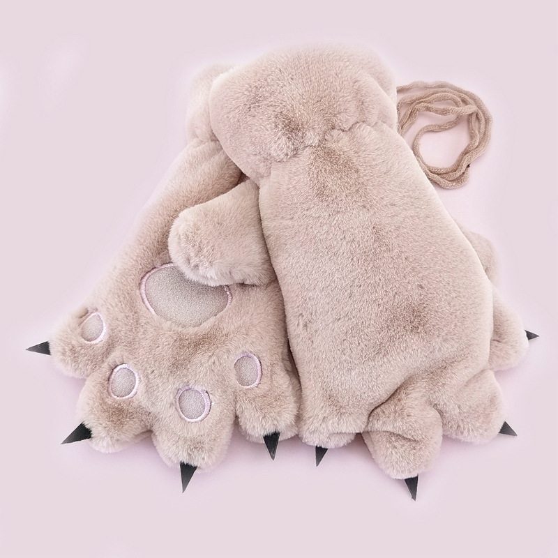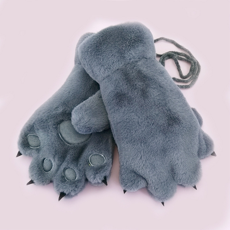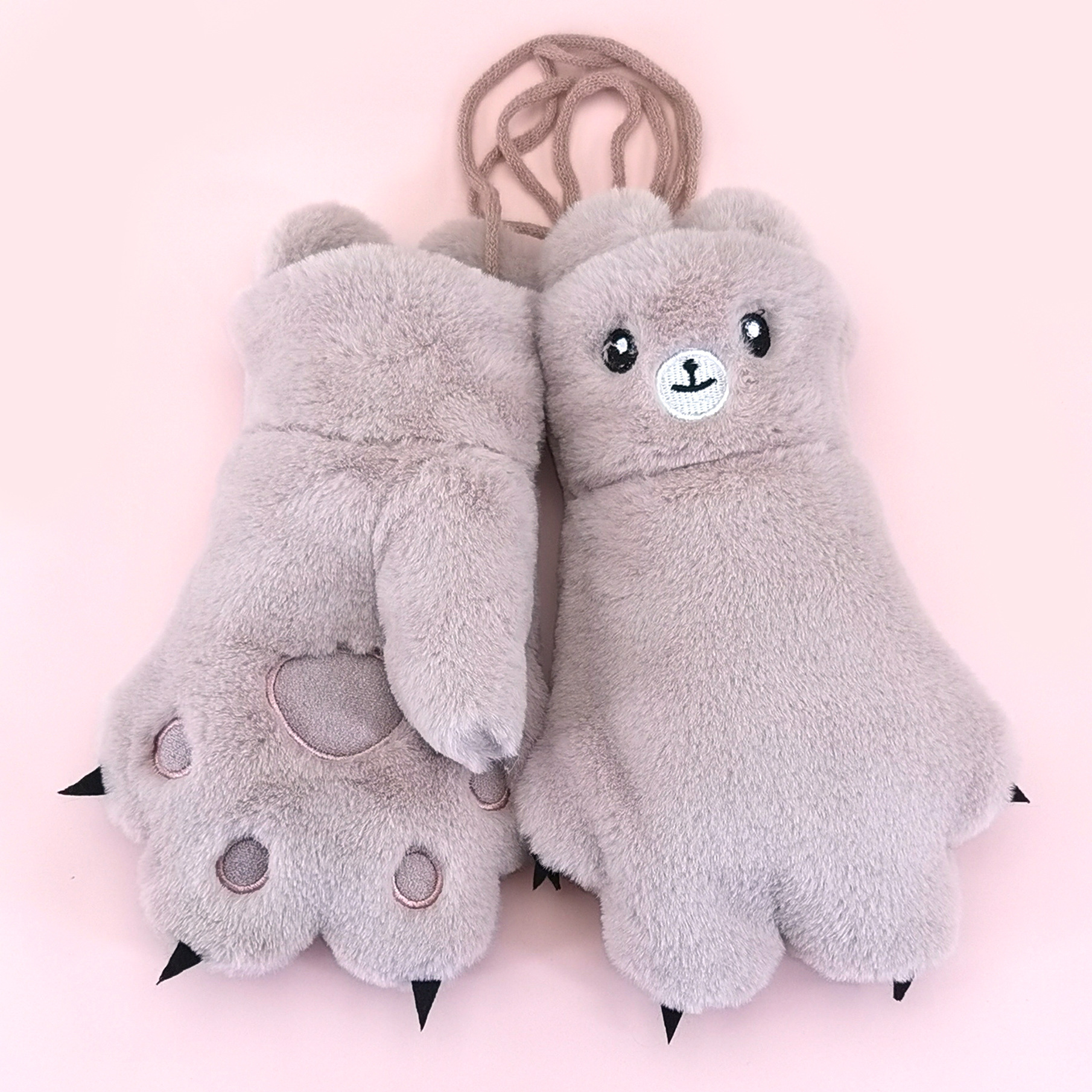 새로운 곰 발바닥 겨울 어린이 따뜻한 장갑 플러스 벨벳 두꺼운 귀여운 만화 큰 어린이 플러시 장갑 고양이 발톱 자수스토어 가기