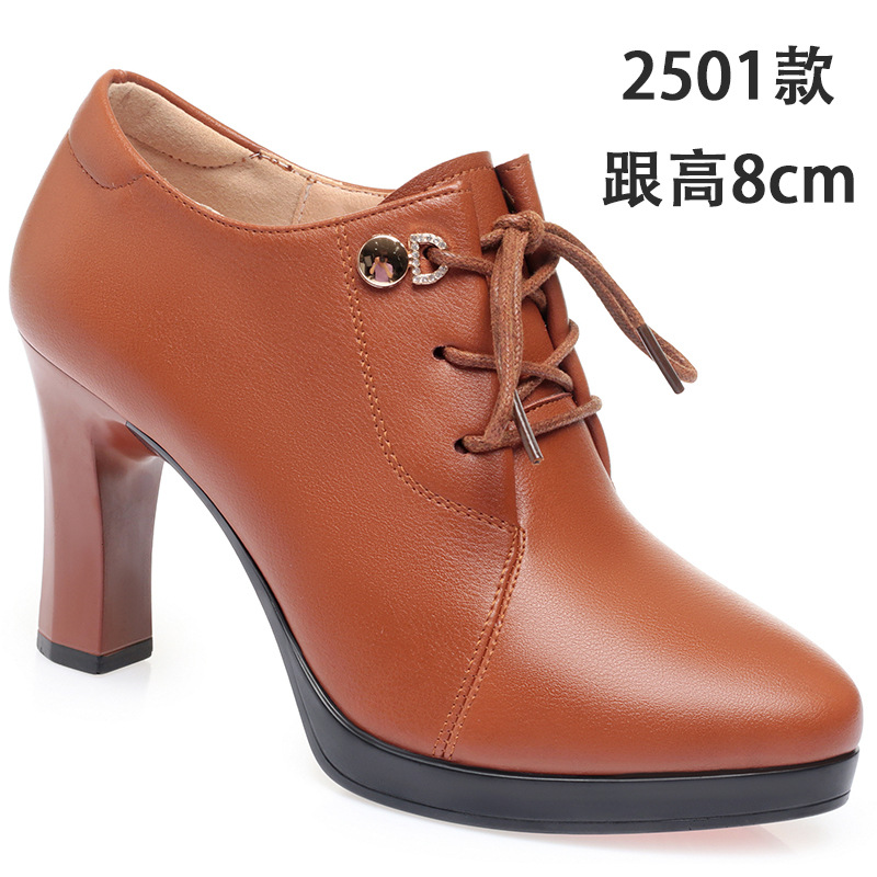 레이스 업 하이힐 부드러운 가죽 깊은 입 싱글 신발 여성용 봄과 가을 2021 새로운 여성 신발 두꺼운 굽 부드러운 솔 엄마 신발 가죽 신발스토어 가기