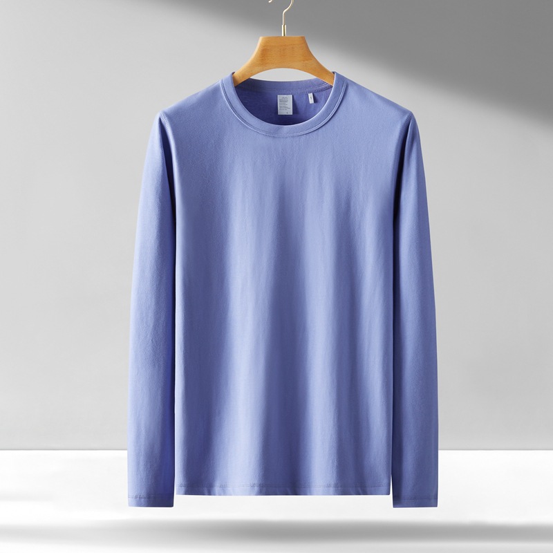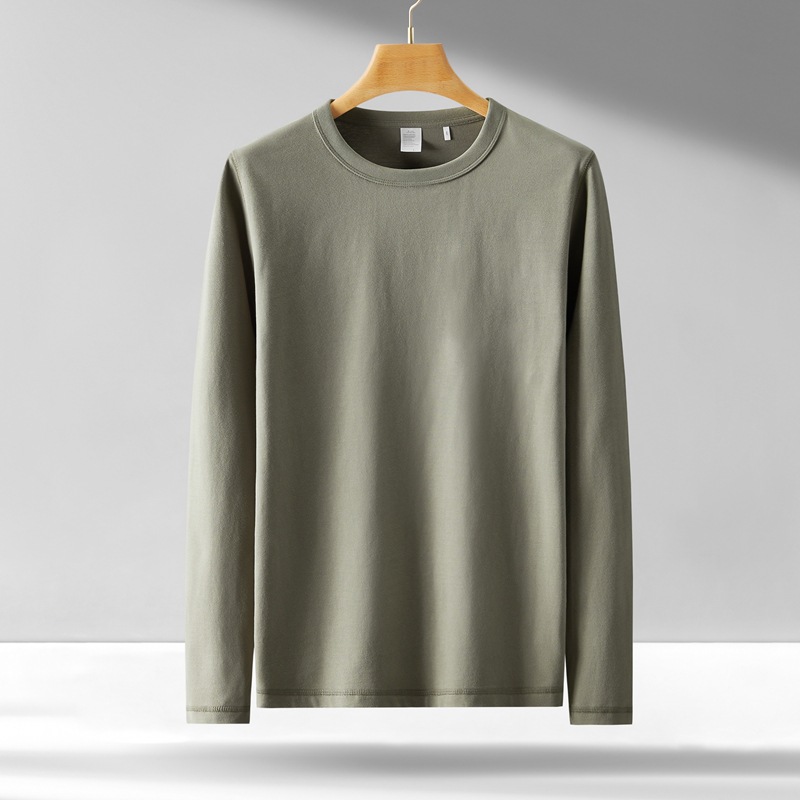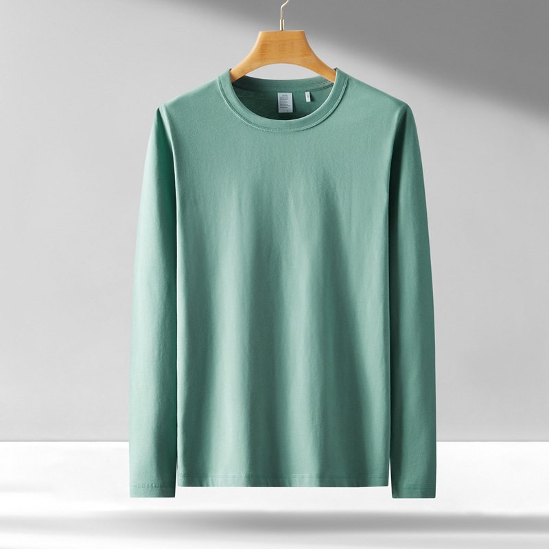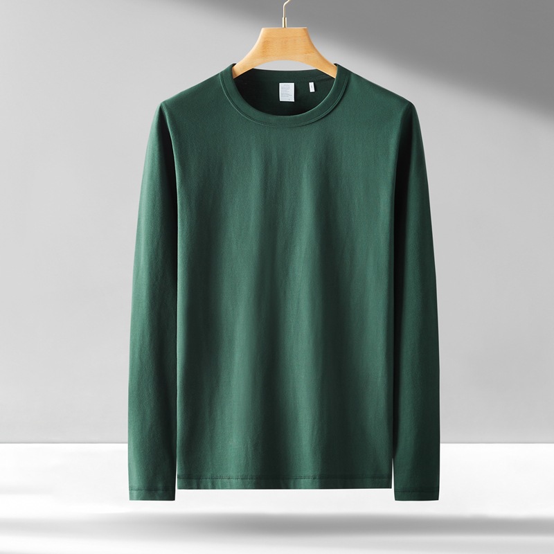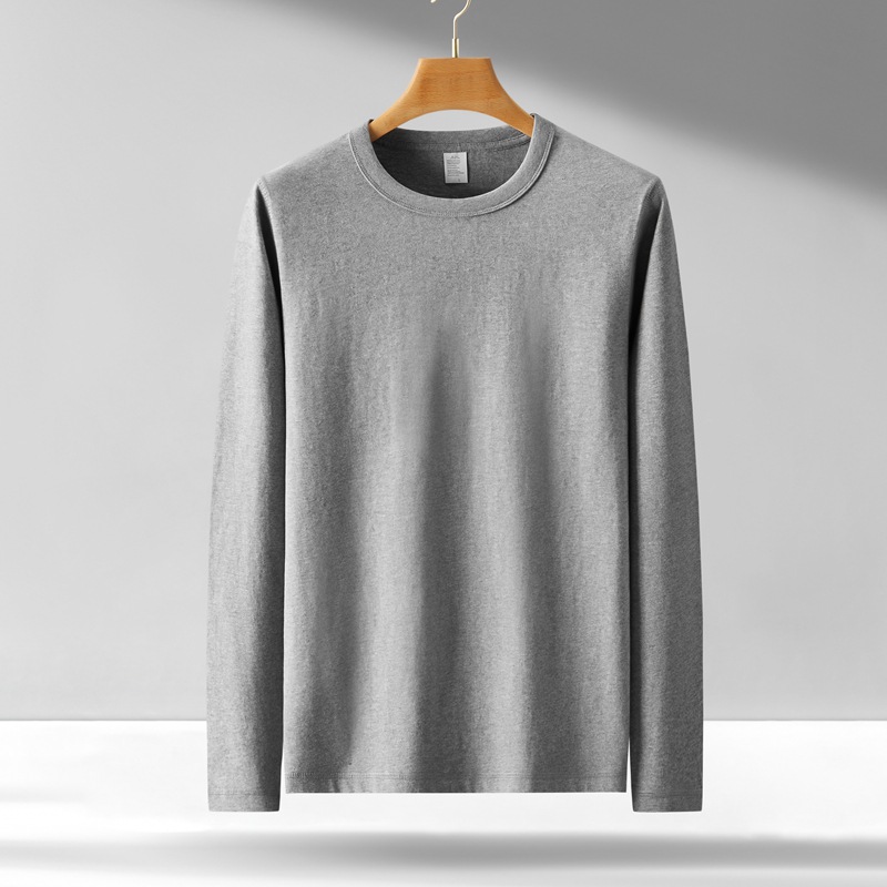 300g 무거운 긴팔 남성 티셔츠 면 느슨한 단색 탑 라운드 넥 청소년 가을/겨울 티셔츠 베이스 셔츠스토어 가기