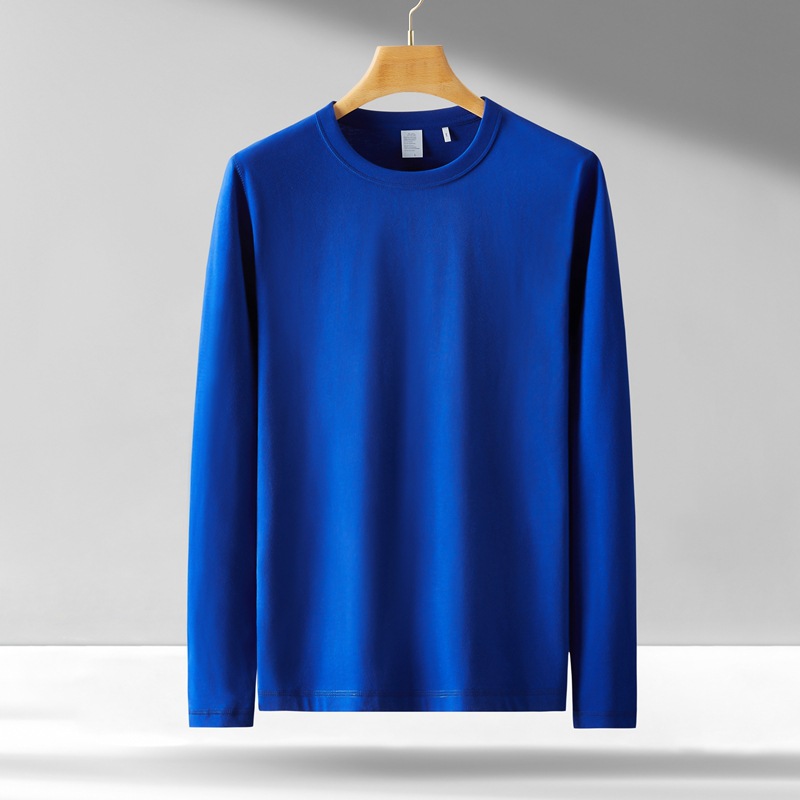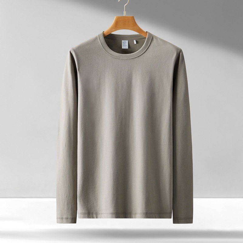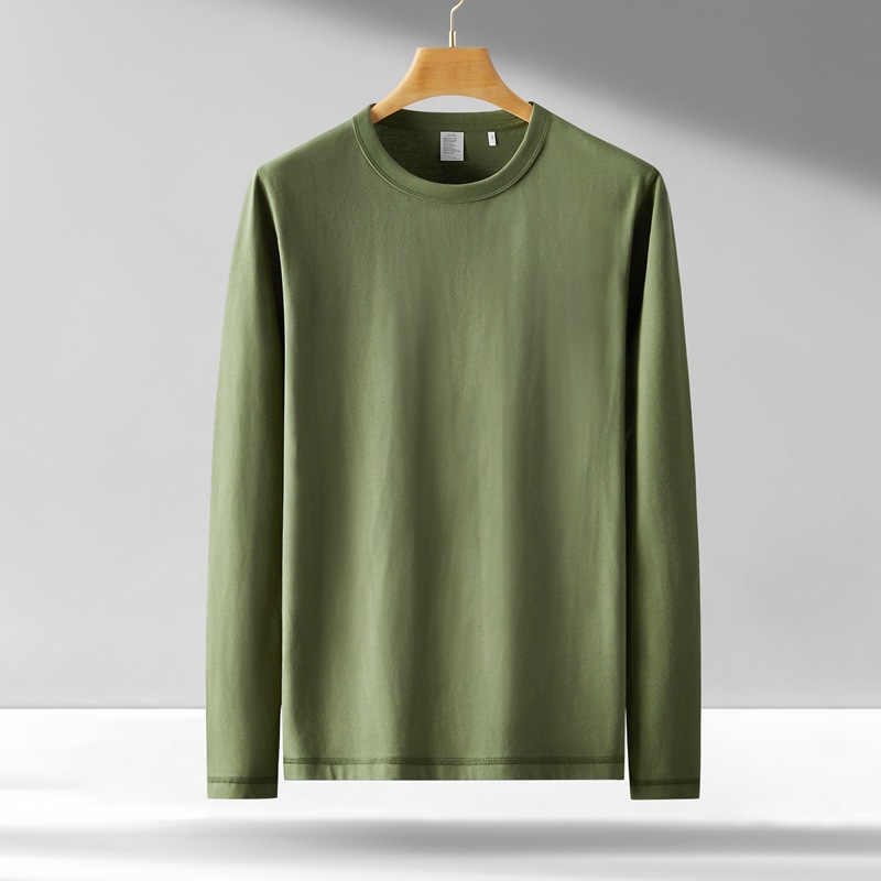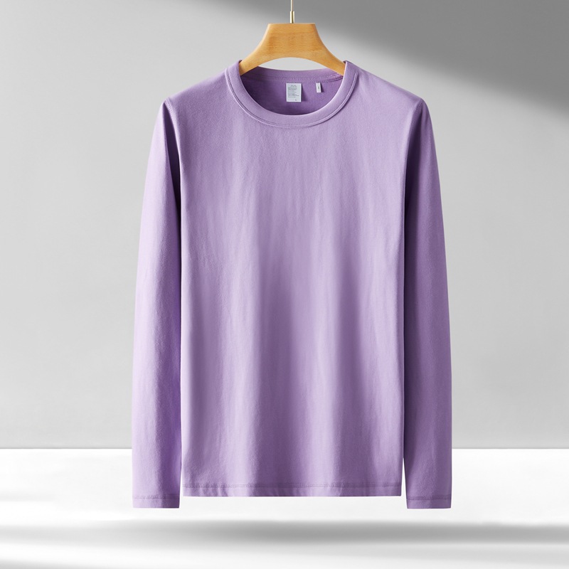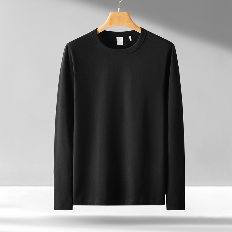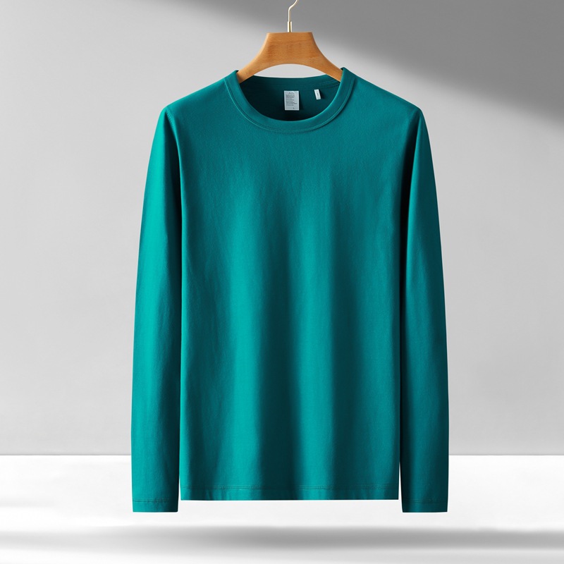 300g 무거운 긴팔 남성 티셔츠 면 느슨한 단색 탑 라운드 넥 청소년 가을/겨울 티셔츠 베이스 셔츠스토어 가기