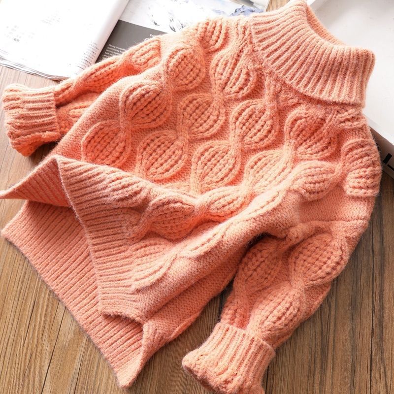 여아용 하이넥 스웨터, 기모 처리되어 두꺼워진, 세련된 가을 겨울 아기 랜턴 스타일, 중대형 아동용 한국 스타일 보온 니트웨어스토어 가기