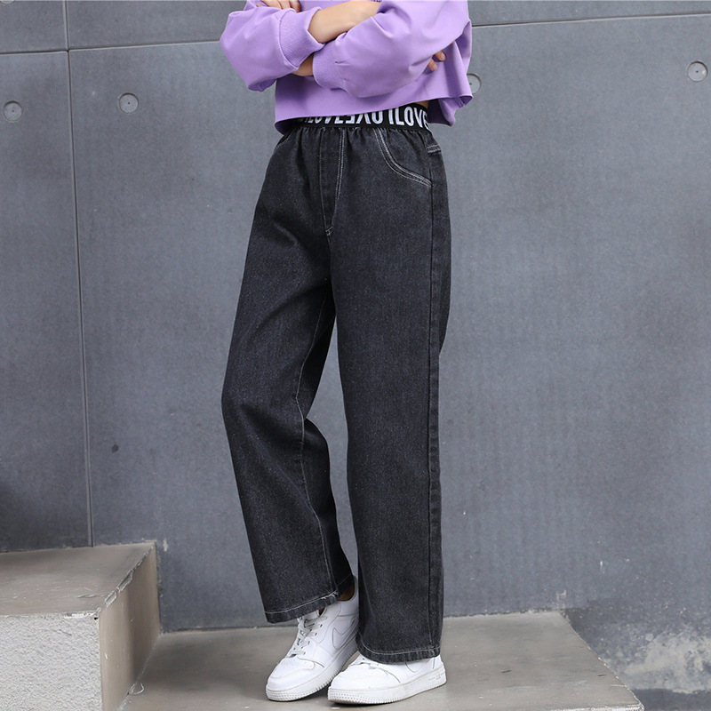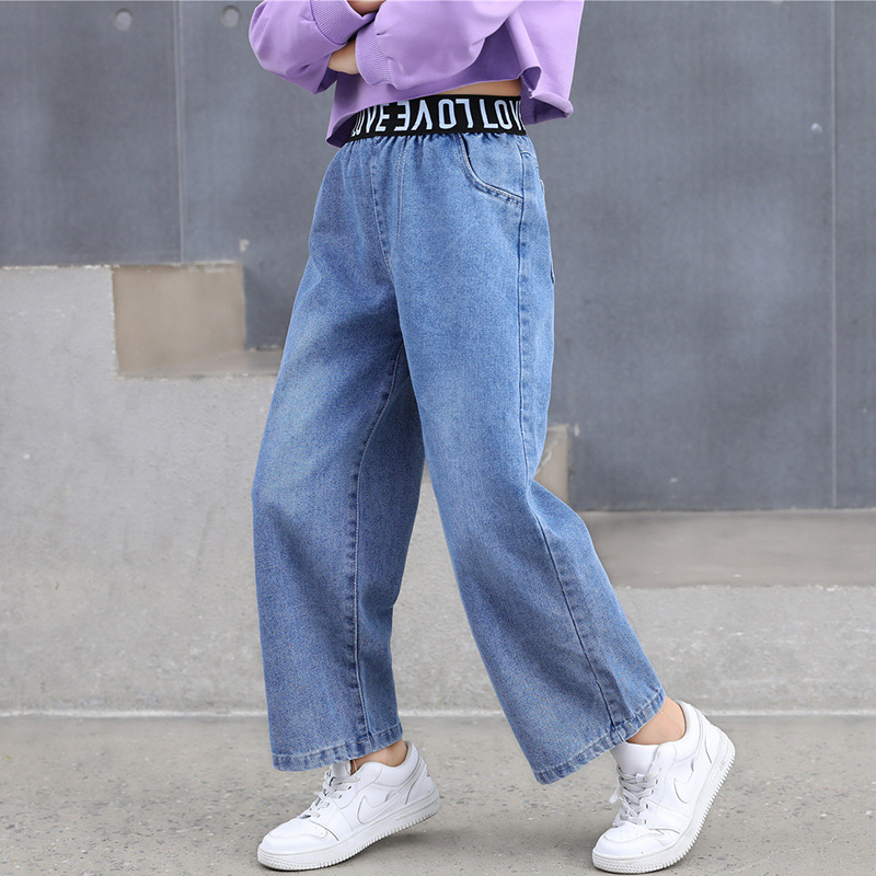 여아 청바지, 가을 옷, 새로운 스타일의 어린 소녀 스트레이트 와이드 팬츠, 중대형 아동 바지, 봄 가을 스타일스토어 가기