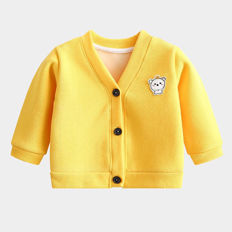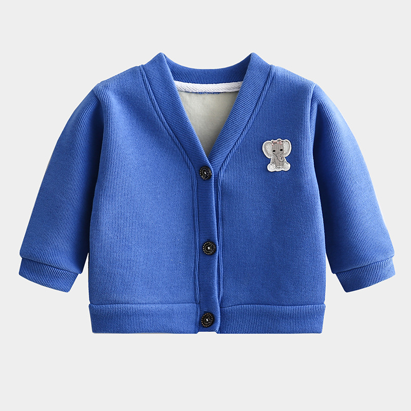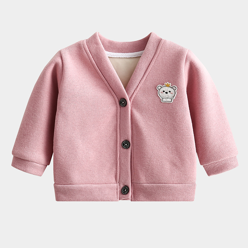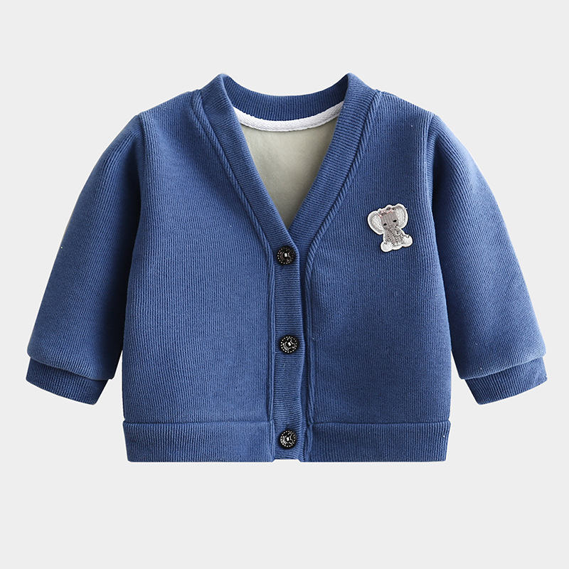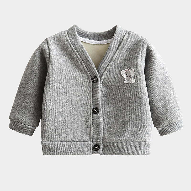 새로운 어린이 가을과 겨울 기모 작은 스웨터 아기 니트 스웨터 카디건 남성과 여성 아기 겉옷 긴 소매 탑