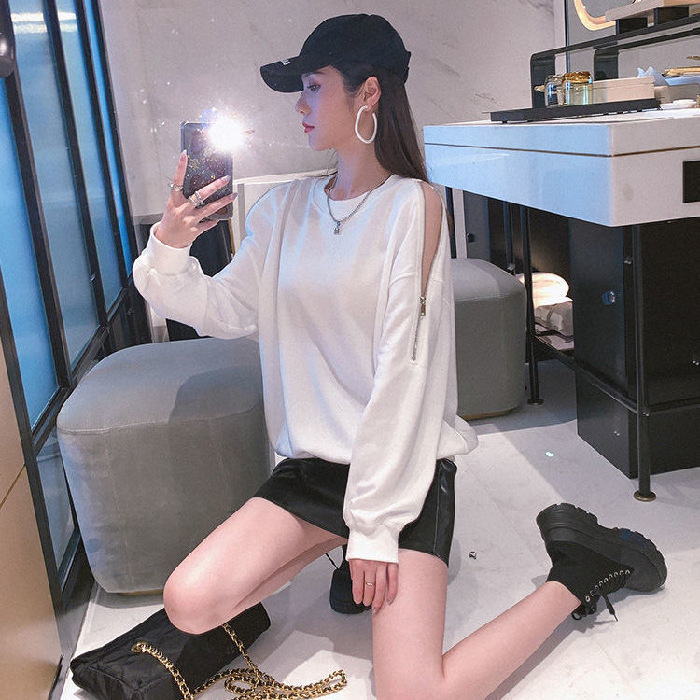 봄과 가을 긴 소매 어깨 지퍼 스웨터 여성 느슨한 한국 2024 새로운 여성 의류 한 세대 국경 도매스토어 가기