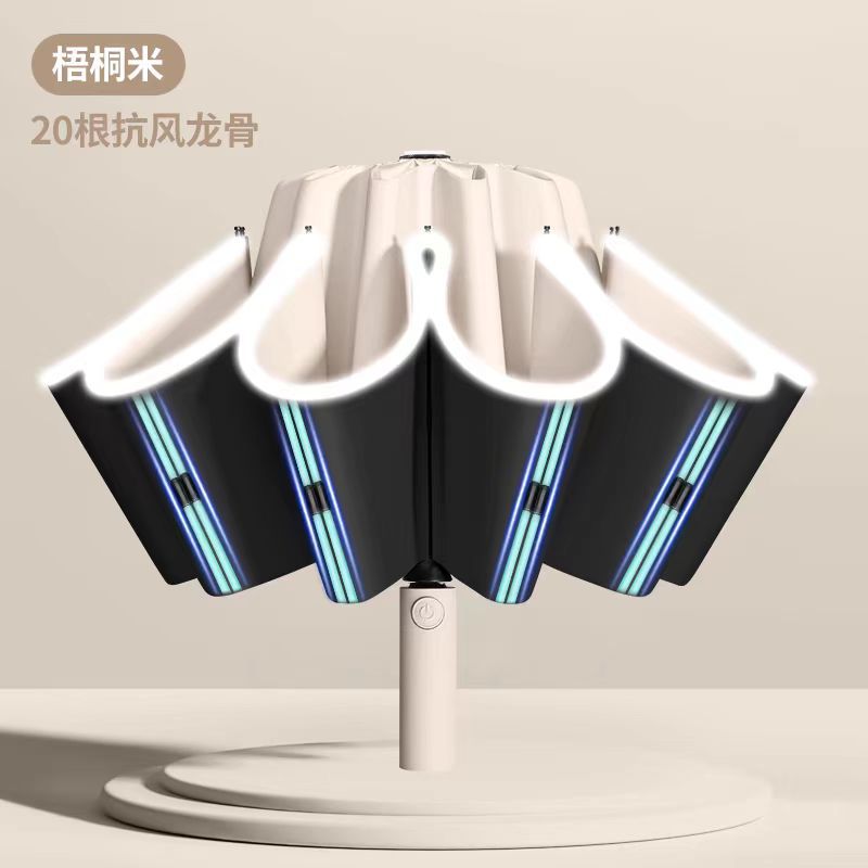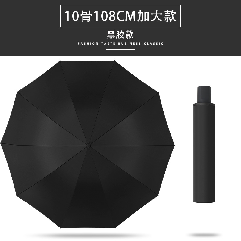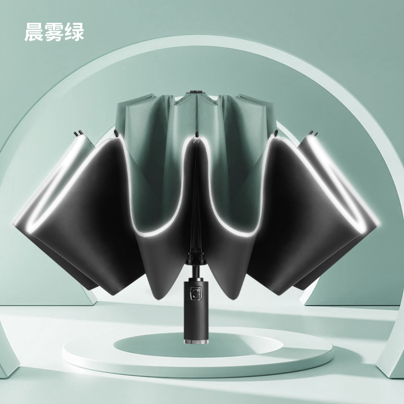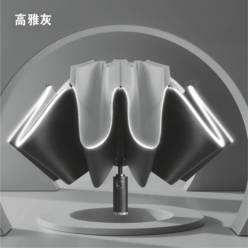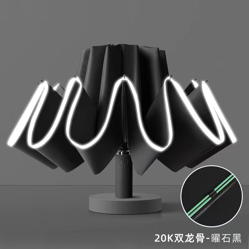 • 비즈니스 블랙 LED10 뼈 역 우산 전체 커버링 블랙 접착제