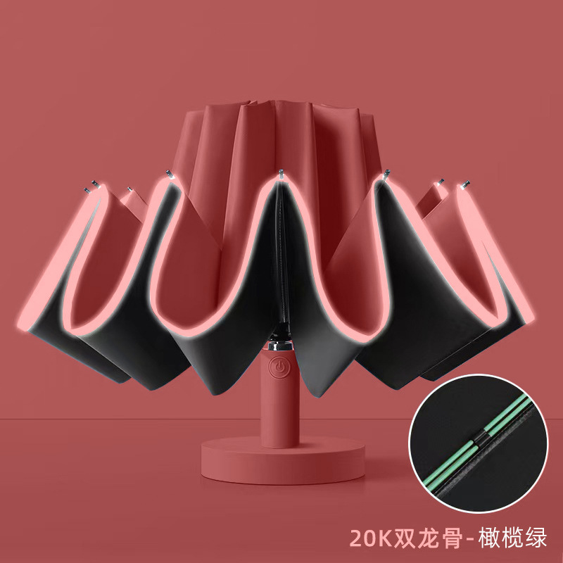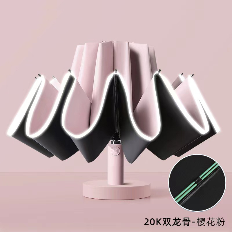 • 핑크 LED10 뼈 역 우산 전체 커버 블랙 접착제