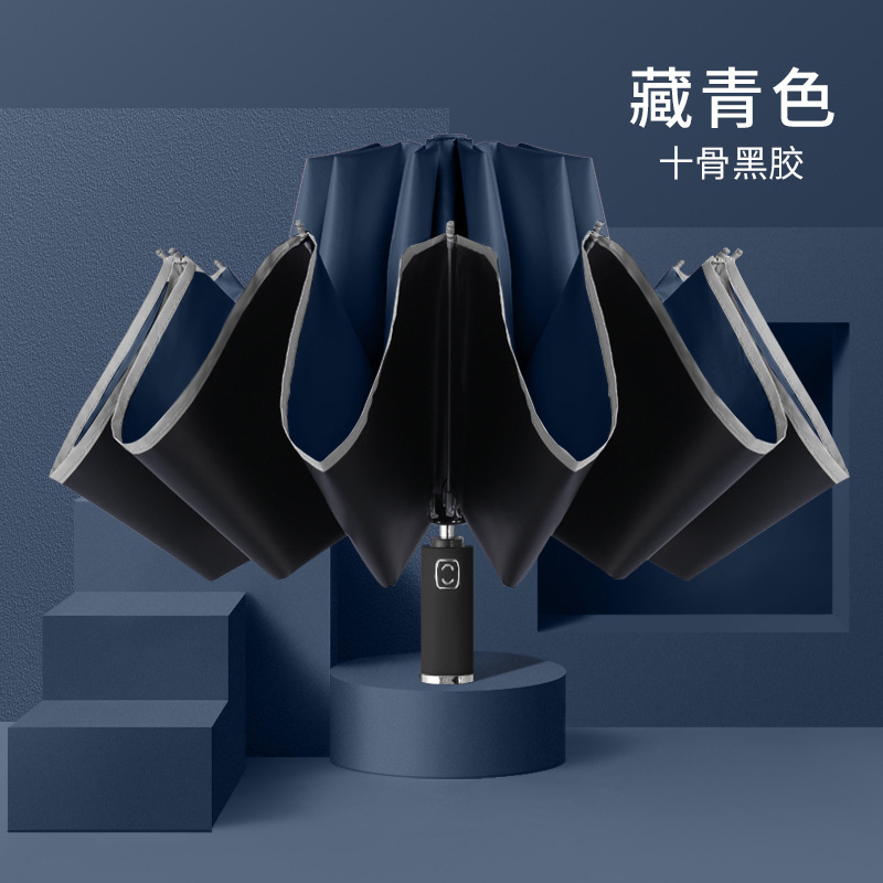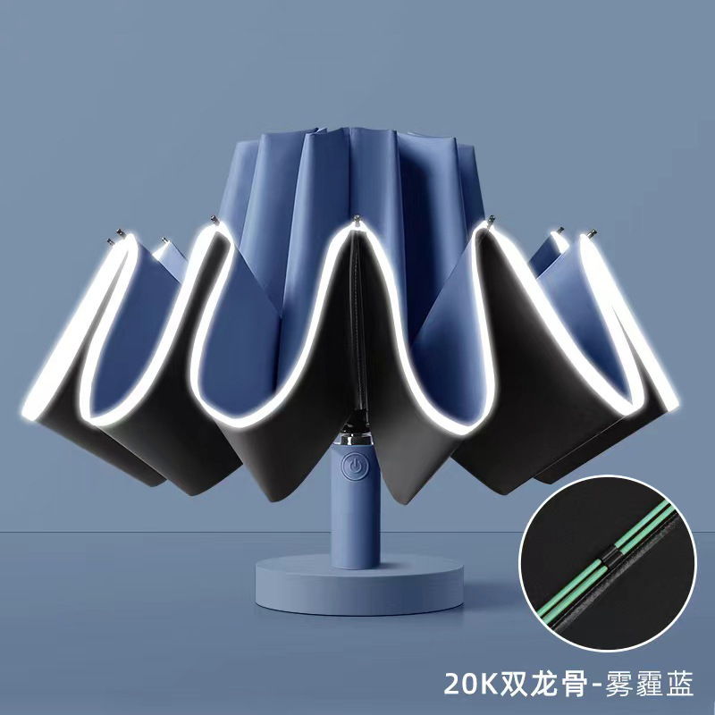 • 다크 블루 LED10 뼈 반전 우산 전체 커버 검은 접착제