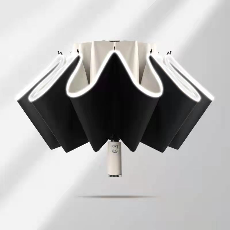 새로운 역방향 완전 자동 3 접이식 검은 반사 스트립 이중 목적 10 본 방풍 로고 역 우산