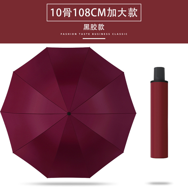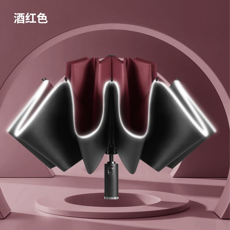 • 버건디 LED10 뼈 반전 우산 전체 커버 검은 접착제