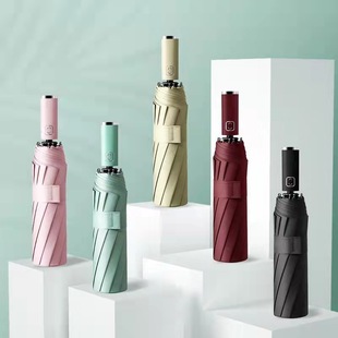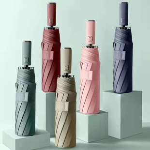 새로운 역방향 완전 자동 3 접이식 검은 반사 스트립 이중 목적 10 본 방풍 로고 역 우산스토어 가기